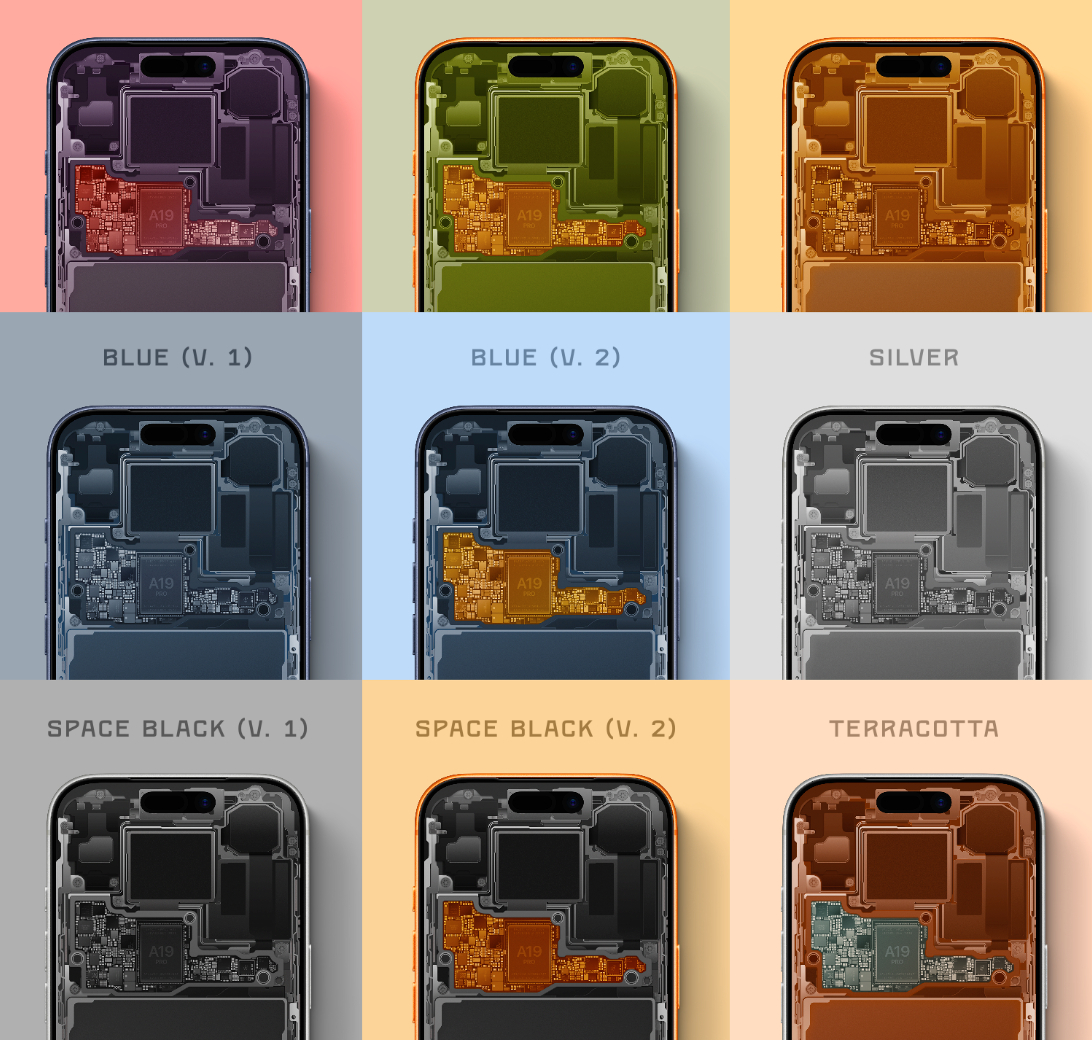 iPhone 17 Pro / Pro Max 内部结构壁纸 来自BasicGuyApple 手工绘制,据说画了一个多月…iPhone 17 Pro 共有 2703 图层,iPhone 17 Pro Max 共有 2843 层,细致的展现iPhone 内部结构的每一处细节。