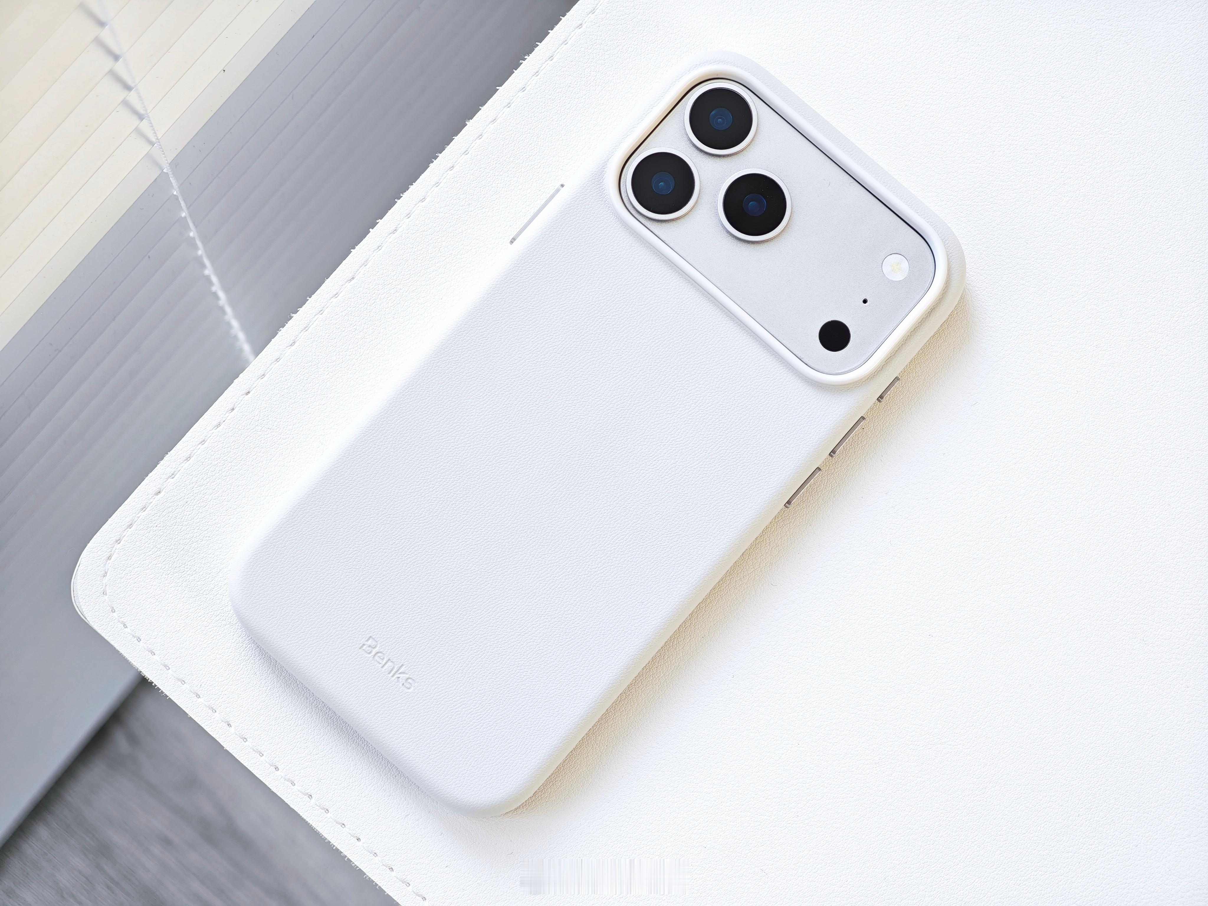 又给 iPhone 17 Pro Max 配了个手机壳 这款是 Benks 邦克仕的轻雅Q2 防摔磁吸壳,又叫“奶皮壳”。外侧是有机皮革,不仅耐刮擦、抗污性能强,同时拥有细腻的皮质触感,非常舒适。内衬有植绒,独立按键和拍照键,支持 MagSafe 强磁吸,保护性和触感都相当不错。