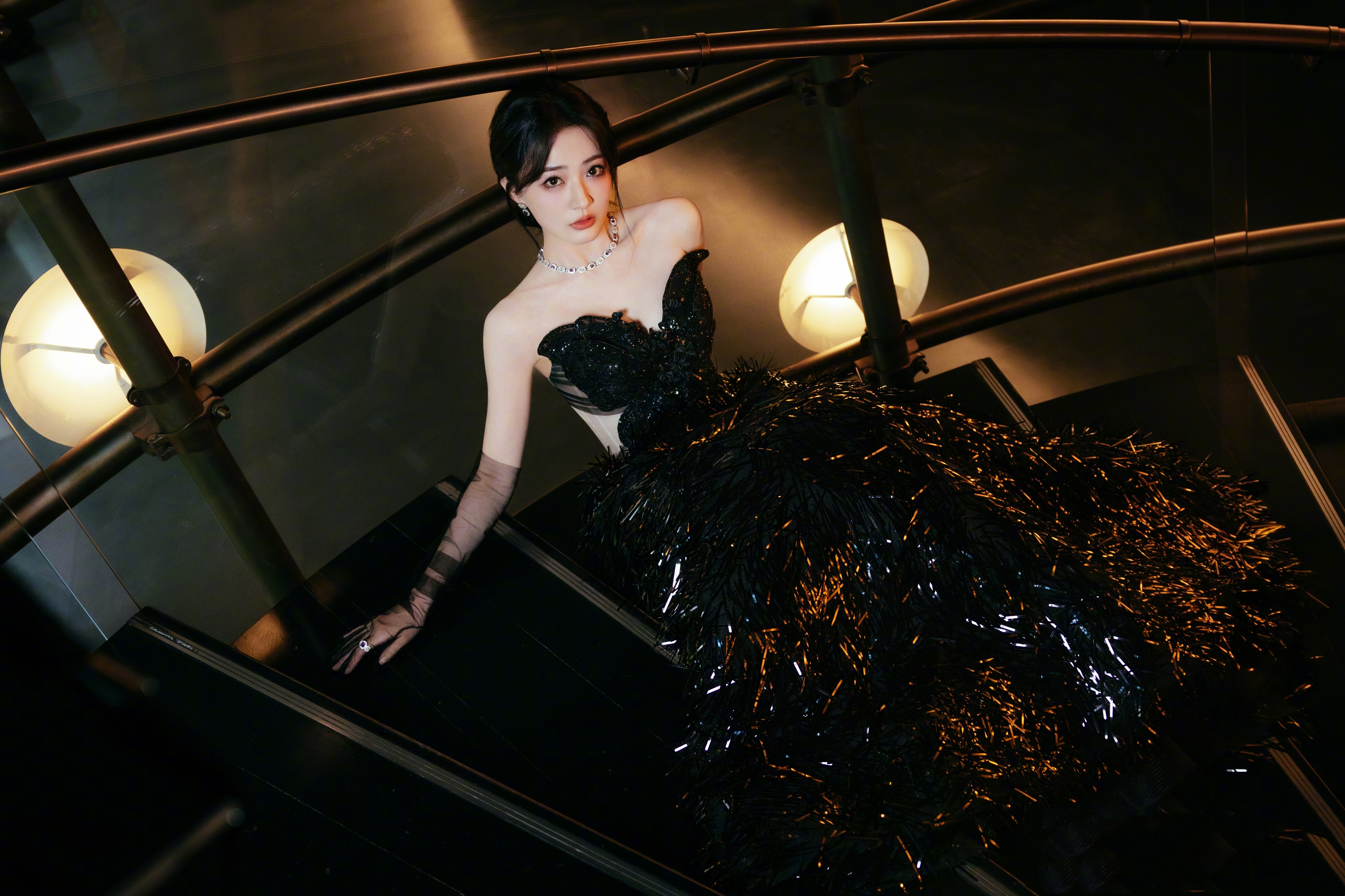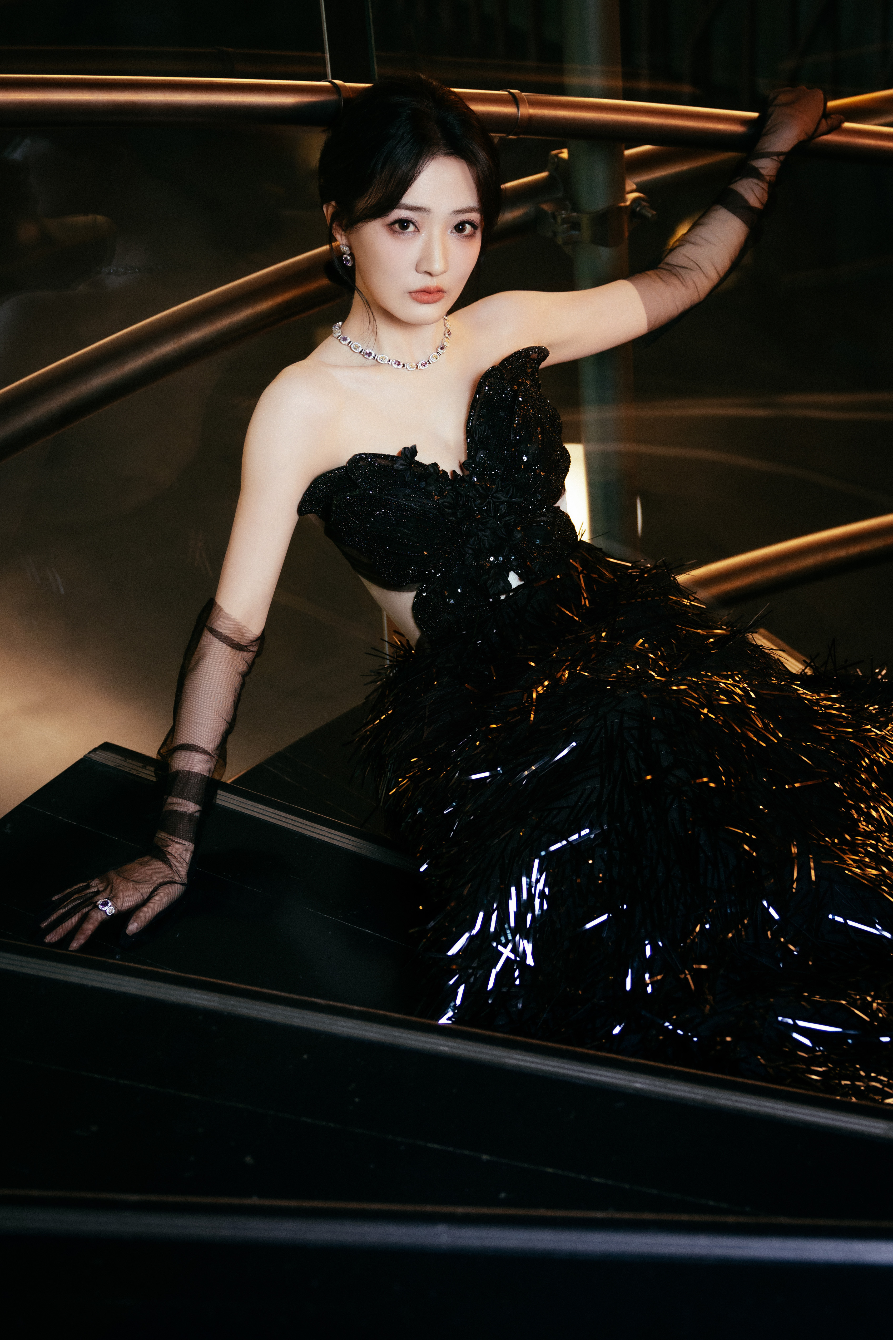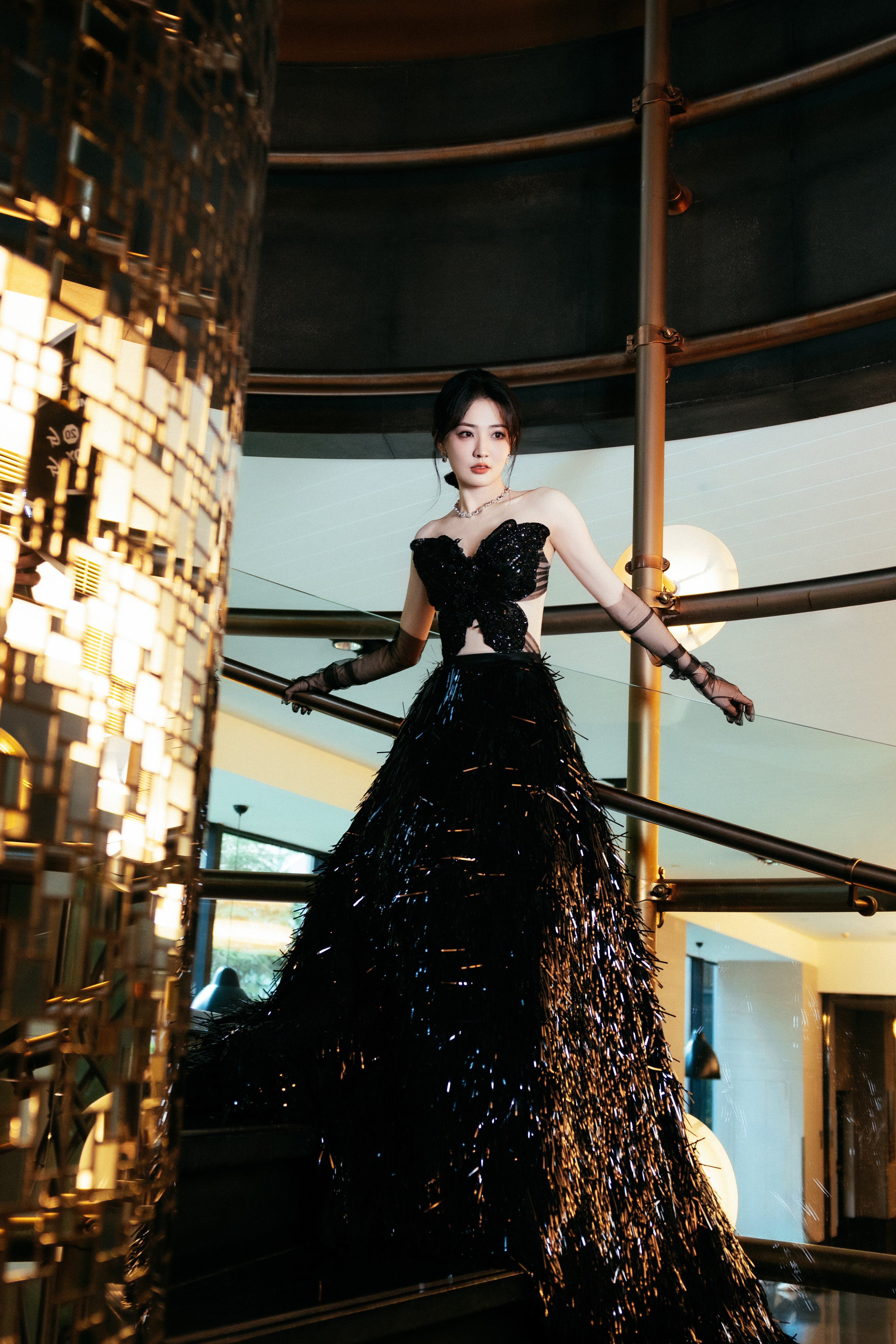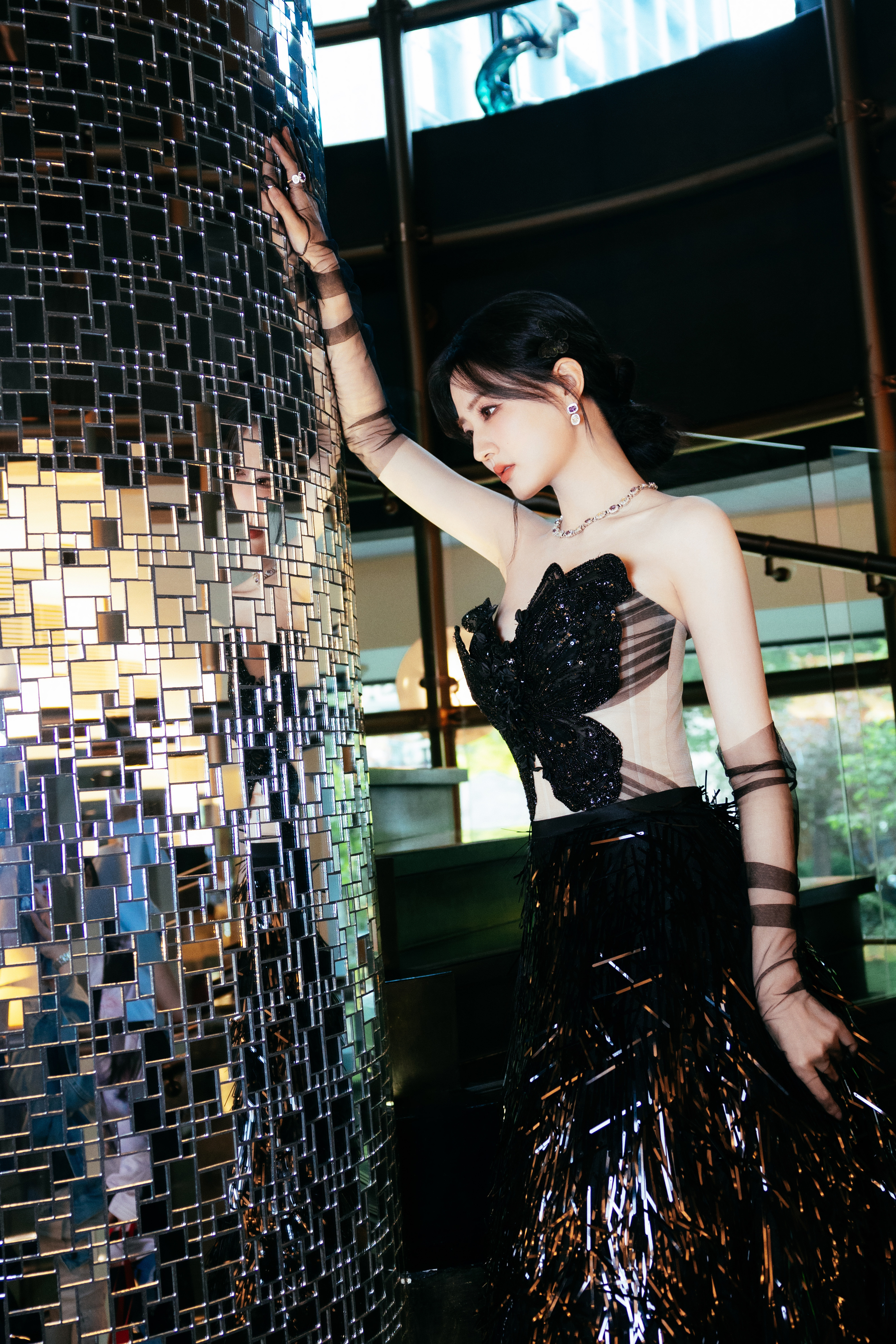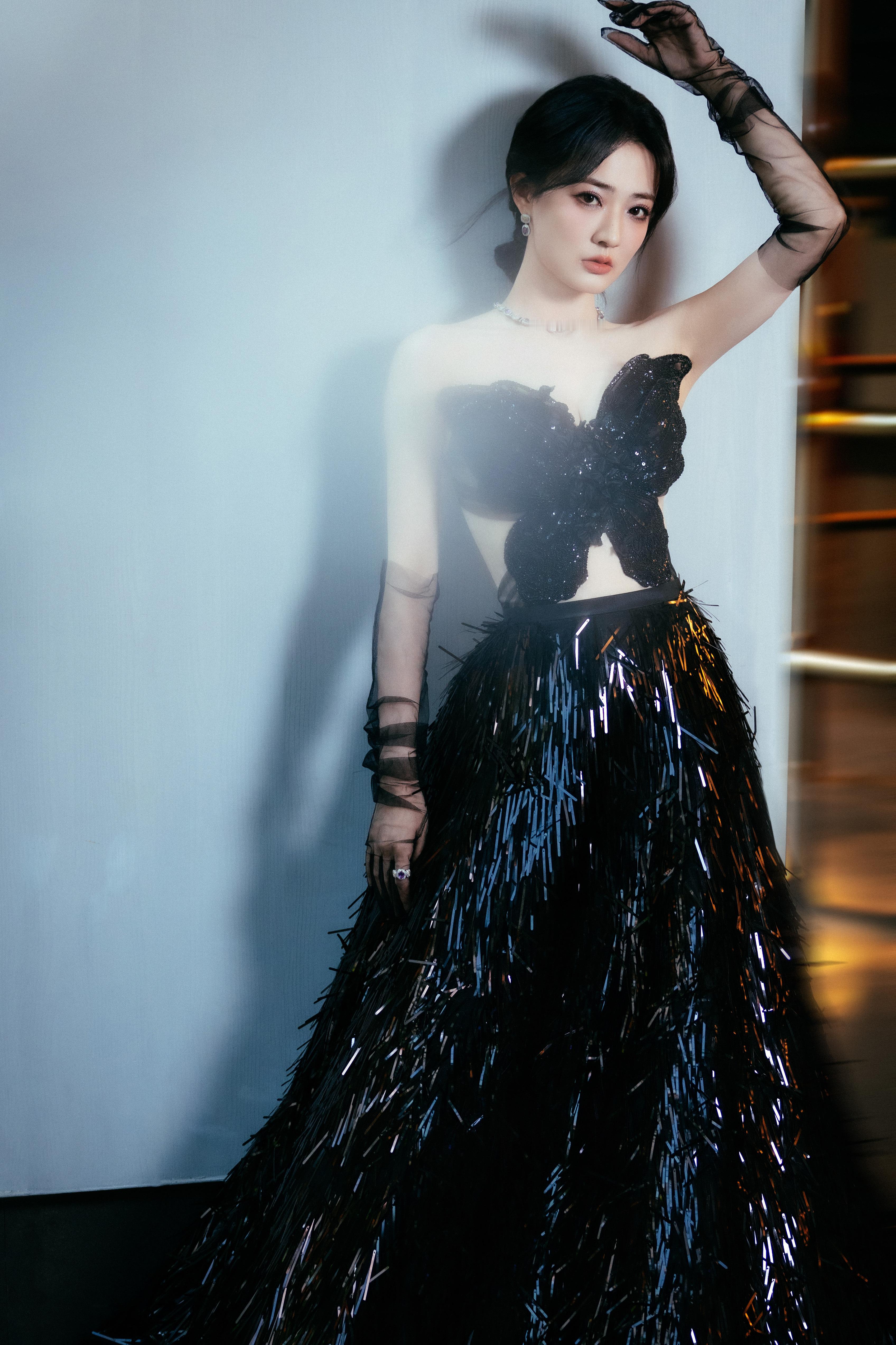 徐璐,蝴蝶抹胸黑纱手套,清冷柔美