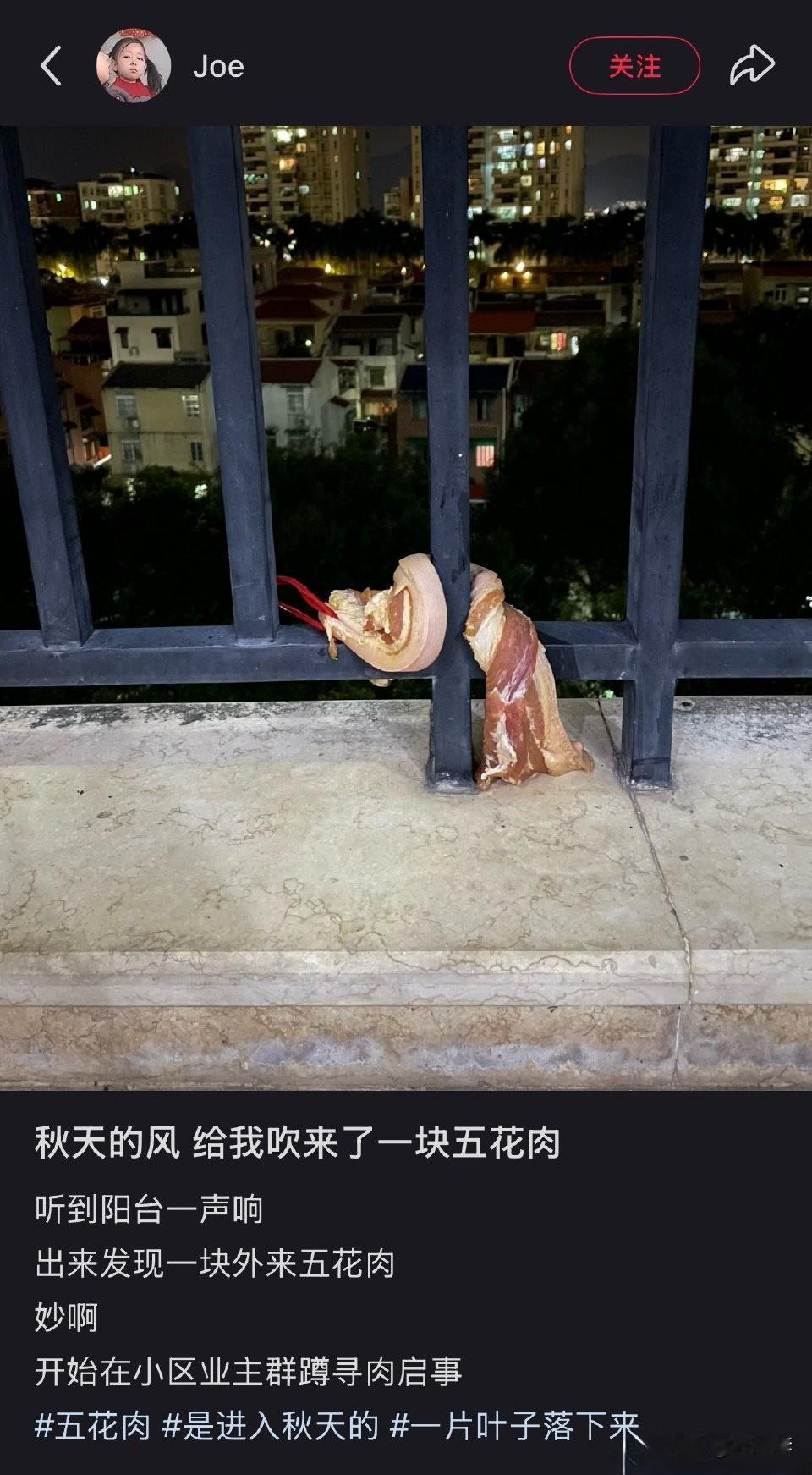 天空一声巨响,五花肉闪亮登场! 曾经我爸在楼下捡到一条香肠[允悲]亲眼看到它掉下来,抬头看到楼上谁家挂满一窗台