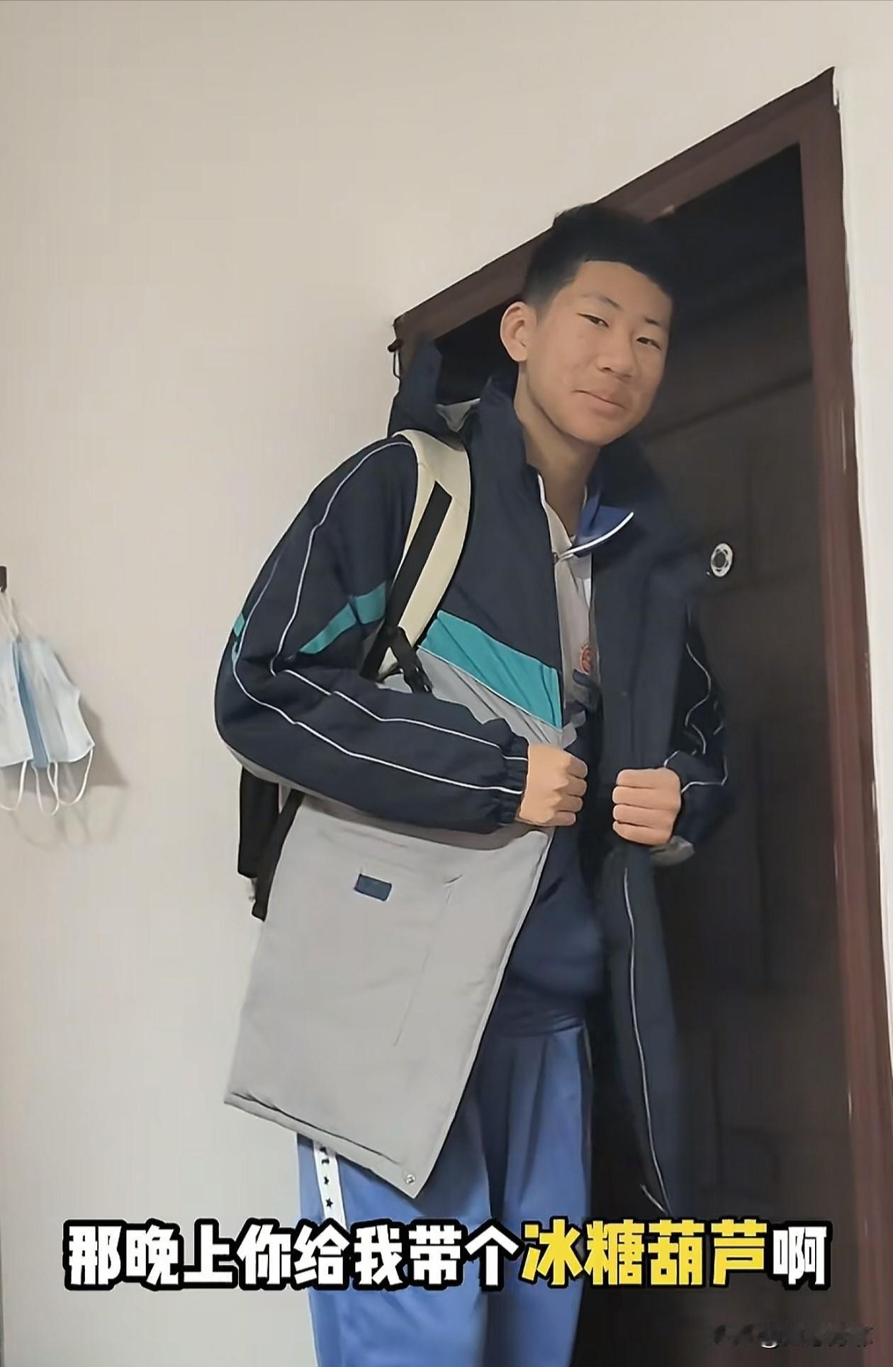 太好笑了!辽宁,一位妈妈和儿子说放学去接他,结果被儿子一眼看穿小心思,其实就是想吃糖葫芦了。网友:还是孩子了解妈妈呀。 儿子穿好衣服,背着书包正准备出门,妈妈突然来了句,儿子,晚上放学妈去接你。 没想到儿子直接就拒绝了,笑着说,不用了妈妈,你想吃啥就直说,晚上我给你带回来。 一下就被儿子拆穿,妈妈还有点不好意思,又找了个理由,我不是想吃,现在有偷小孩的。 儿子直接吐槽,偷小孩的是缺德,不是缺心眼,哪有装我这么大孩子的麻袋呢。 妈妈被儿子的这番话逗乐了,也不掩饰了,干脆说,那行吧,晚上给我带串冰糖葫芦回来! 这件事很小很普通,却让人觉得无比温暖和治愈,因为儿子懂妈妈,愿意满足妈妈想吃糖葫芦的小愿望,包含的全是对妈妈的爱。 母子俩之间的对话既真实又可爱,儿子一句话就戳破了妈妈的小心思,耿直又幽默。 其实幸福就是这么简单,一句拆穿的玩笑,一串甜甜的糖葫芦,就能让平凡的日子变得美好。