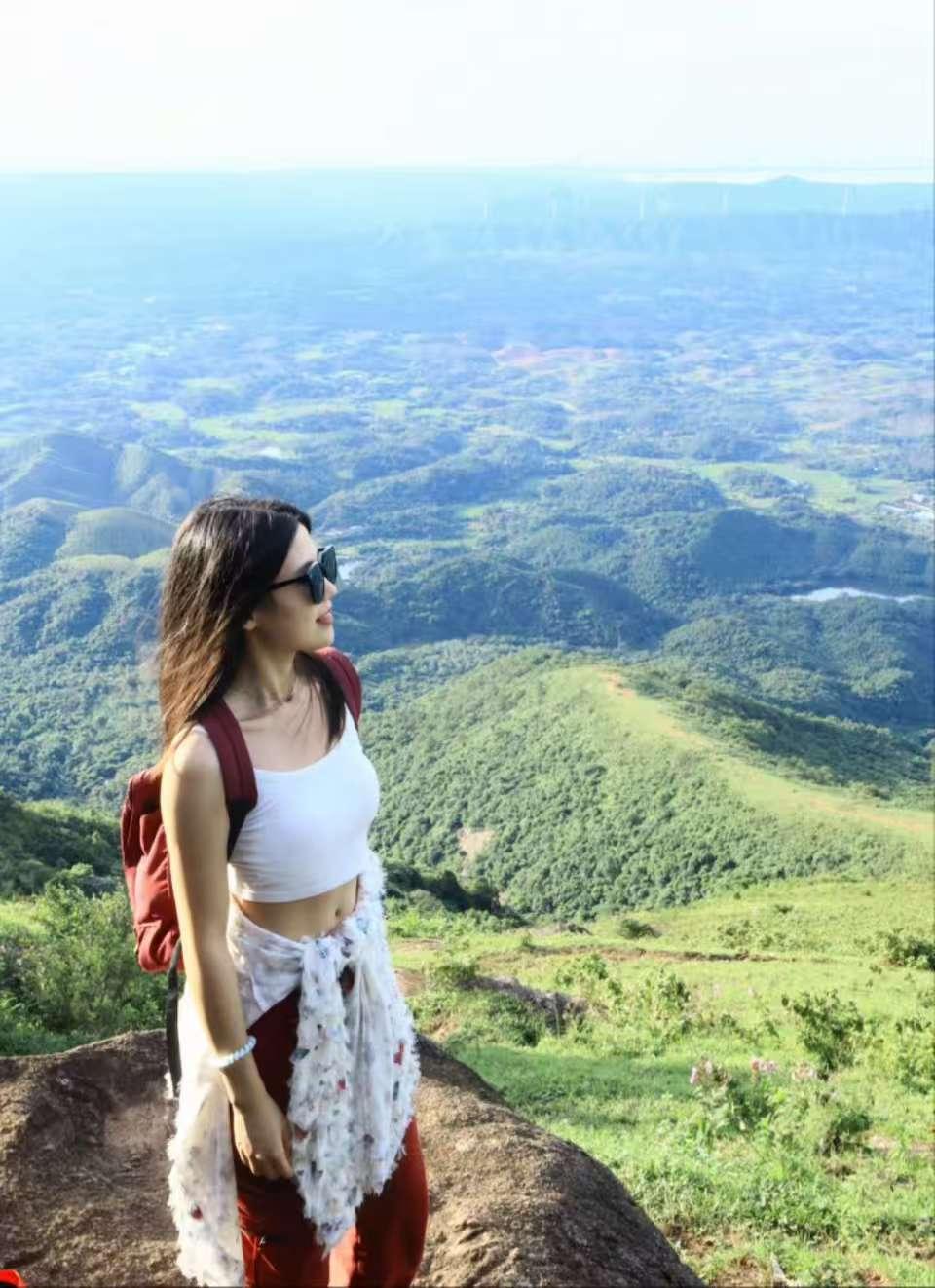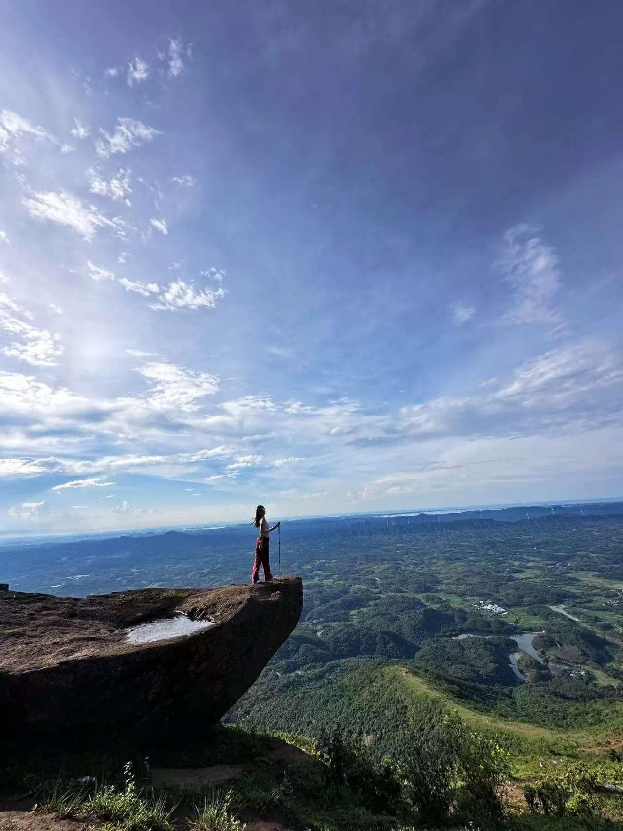 当脚步终于踏上山顶, 风从耳边呼啸而过, 带着山间特有的清凉与松脂的香气。 低头望去, 连绵的山峦层层叠叠, 仿佛都被踩在了脚下。 那一刻, 才真正理解了“一览众山小”的豪情。 课本上的诗句曾让我想象过无数次, 却不及这一次亲身的感受来得真切。