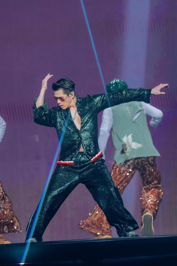 【On.cc】郭富城開啟萬人「應援大合唱」 數度哽咽向歌迷許下承諾「舞台王者」郭富城(城城)的《ICONIC世界巡迴演唱會》高雄巨蛋場圓滿結束,演唱會由國際級美術大師張叔平擔任造型及視效總監,以「能量、光影與時間流動」為核心概念,打造出極具電影質感的舞台視覺。從高訂金屬質感舞衣到鏡面反射燈效,每個細節都展現出張叔平極致的舞台美學,多套舞台服飾令燈光章節與整體視覺氛圍完美呼應,讓整場演出如一場流動的藝術展演。郭富城實力擔當。一連兩場,城城狀態十足,全程投入唱跳,從動感十足的《唱這歌》、《動起來》、《Para Para Sakura》,到深情款款的經典情歌,每首歌曲都是一個故事。當《我是不是該安靜的走開》的旋律響起時,全場萬人開啟「應援式大合唱」,粉絲的歌聲與天王的嗓音交織成最動人的樂章,場面感人。郭富城歌精舞勁。城城感性地說:「每次唱這首歌,都像是回到最初的自己。今晚聽到你們一起唱,我真的很感動。」特別唱至「等你明白,我給你的愛,永遠都不能走開」時,萬人一句一句和應,讓天王幾度哽咽,場面感人至深,到中場時又把觀眾帶進他的畫室,展示藝術天分,即場潑油彩作畫、邊唱《分享愛》,讓觀眾讃嘆不已。郭富城施展渾身解數。站在舞台上,城城展示其結實腹肌,他說:「每天的舞台動作都像健身一樣,但我每天洗澡都看到,也不覺得有甚麼特別啦!」。最受期待的「Baby Shark」橋段,成為演唱會的最大亮點之一。城城親自從觀眾席邀請幸運粉絲登台,幽默互動帶動全場氣氛。第二晚更升級為「萬人齊跳Baby Shark」的壯觀場面,整座巨蛋觀眾同步擺動手勢、唱出旋律,尖叫聲與笑聲此起彼落,成為「ICONIC高雄站」最具代表性的經典畫面。郭富城即場潑油彩作畫。演出尾聲,城城向歌迷許下承諾:「希望不用相隔太久就再回來開唱。」隨後以《等我回來》與歌迷定下再會之約。當壓軸曲《對你愛不完》的熟悉旋律響起,整座巨蛋化為一片溫柔燈海。他走到舞台前緣,言辭懇切地說:「感謝你們兩晚的陪伴,高雄歌迷的熱情我永遠不會忘記,我一定會再回來!」全場掌聲如雷,觀眾高舉手機燈光,以最亮的星海為這兩夜的音樂盛宴畫下完美句點。全場大合唱。城城展示其結實腹肌。郭富城實力母庸置疑。郭富城技驚四座。郭富城魄力驚人。郭富城歌聲繞樑三日。