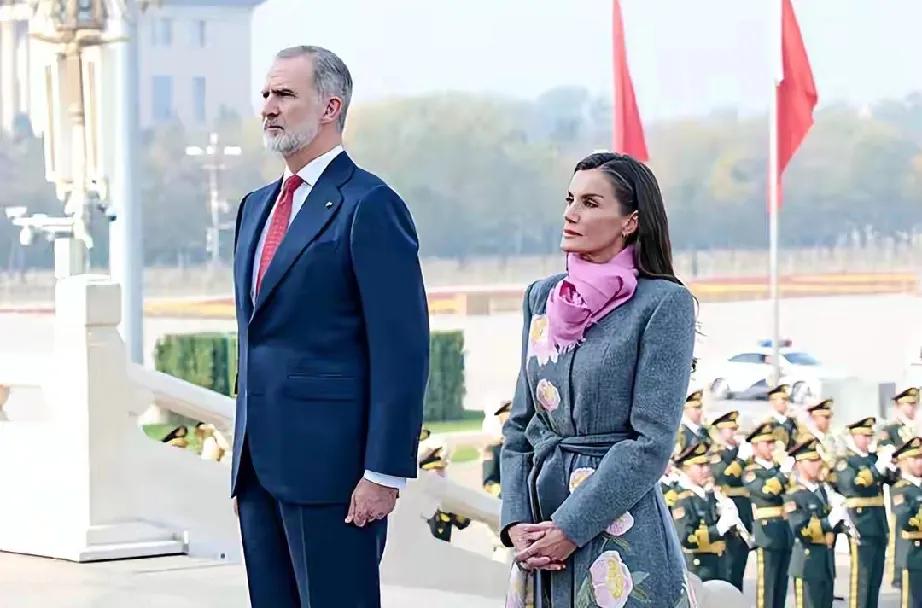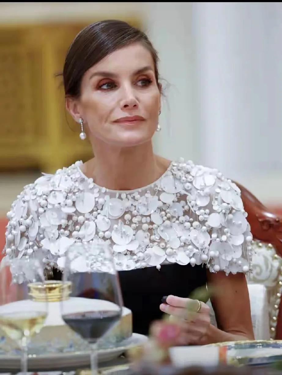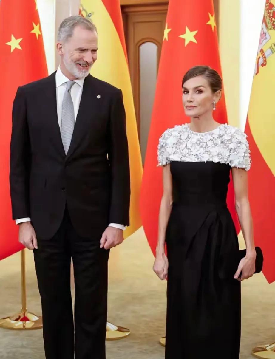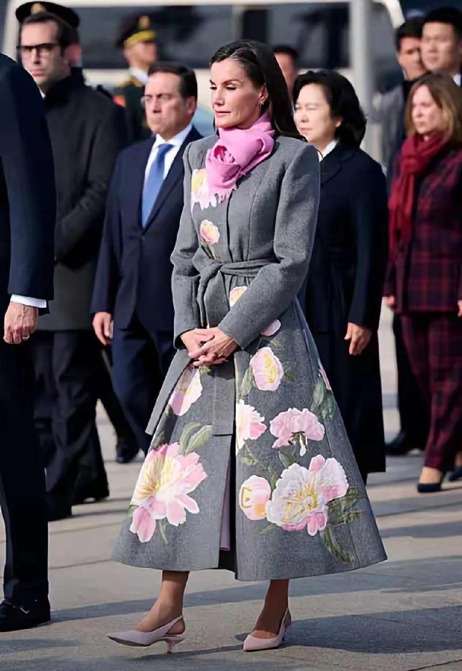 西班牙国王和王后访华接近尾声,11月12日国宴上,莱蒂齐亚王后美出圈! 她选了Carolina Herrera拼接连衣裙,这可是2022年就穿过的旧衣,但旧衣新穿,她依旧轻松驾驭,尽显优雅,不愧是“会过日子”的王后。 晚宴后看表演,她的小黑裙精致迷人,亮片串珠点缀,女人味十足,低跟鞋搭配也超美。欢迎仪式上,她身着牡丹花大衣,搭配粉色围巾,减龄又用心。 莱后多年身材不变,超模气质,每次亮相都让人惊艳,这衣品和节俭风范,必须点赞! 王后的造型 西班牙国王访华