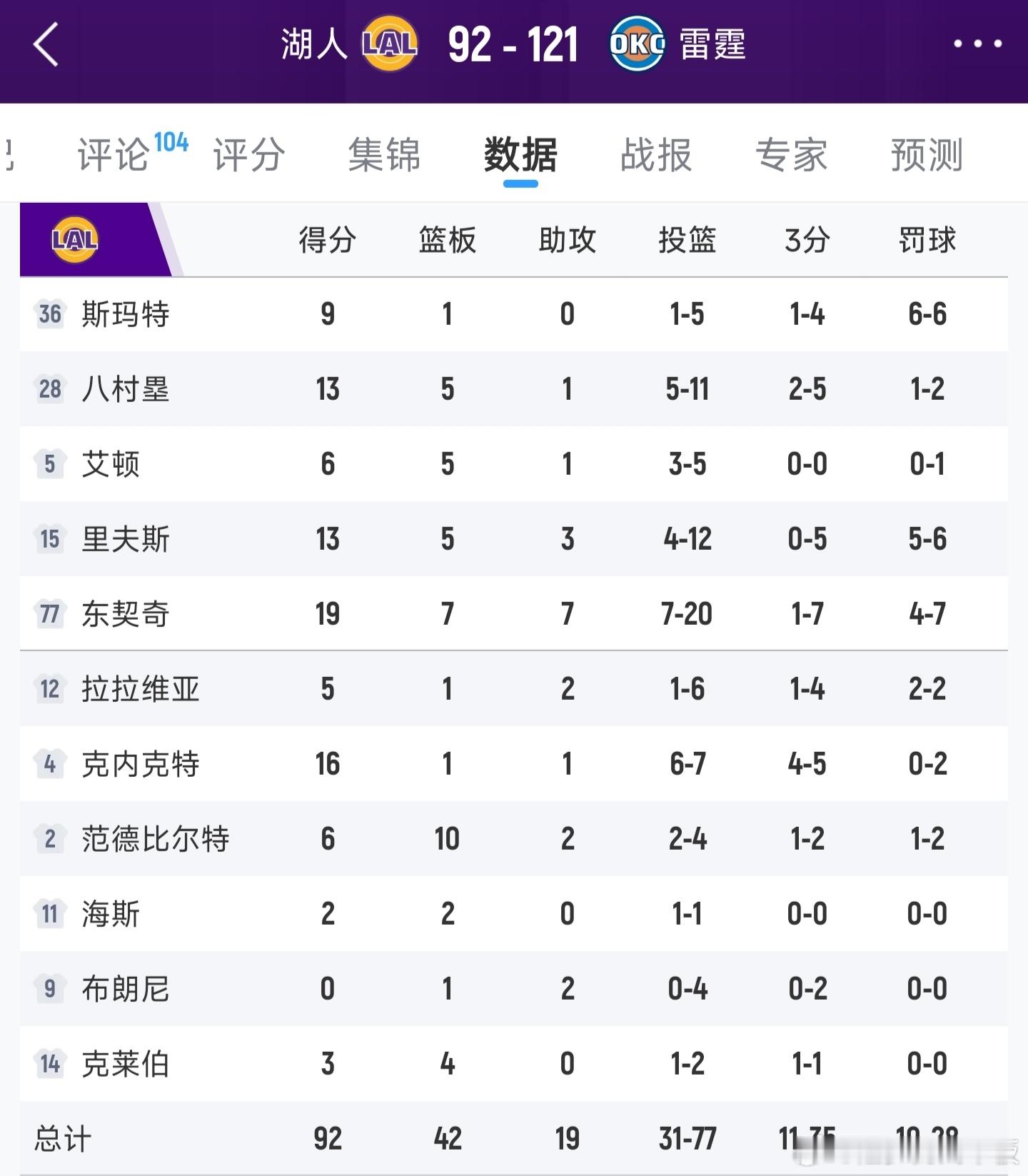 赛季最惨痛失利!湖人92-121不敌雷霆,如何评价本场比赛?