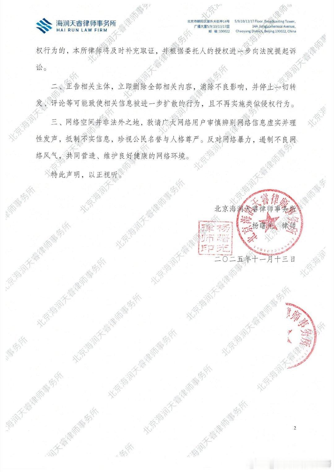 刘浩存工作室公示维权案件进展