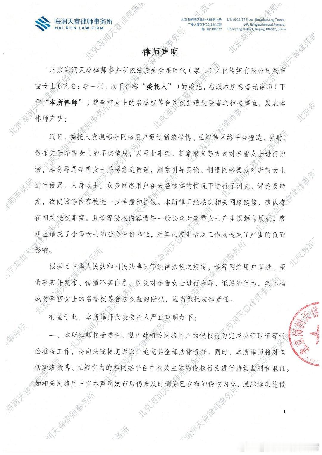 李一桐工作室发布告嘿名单