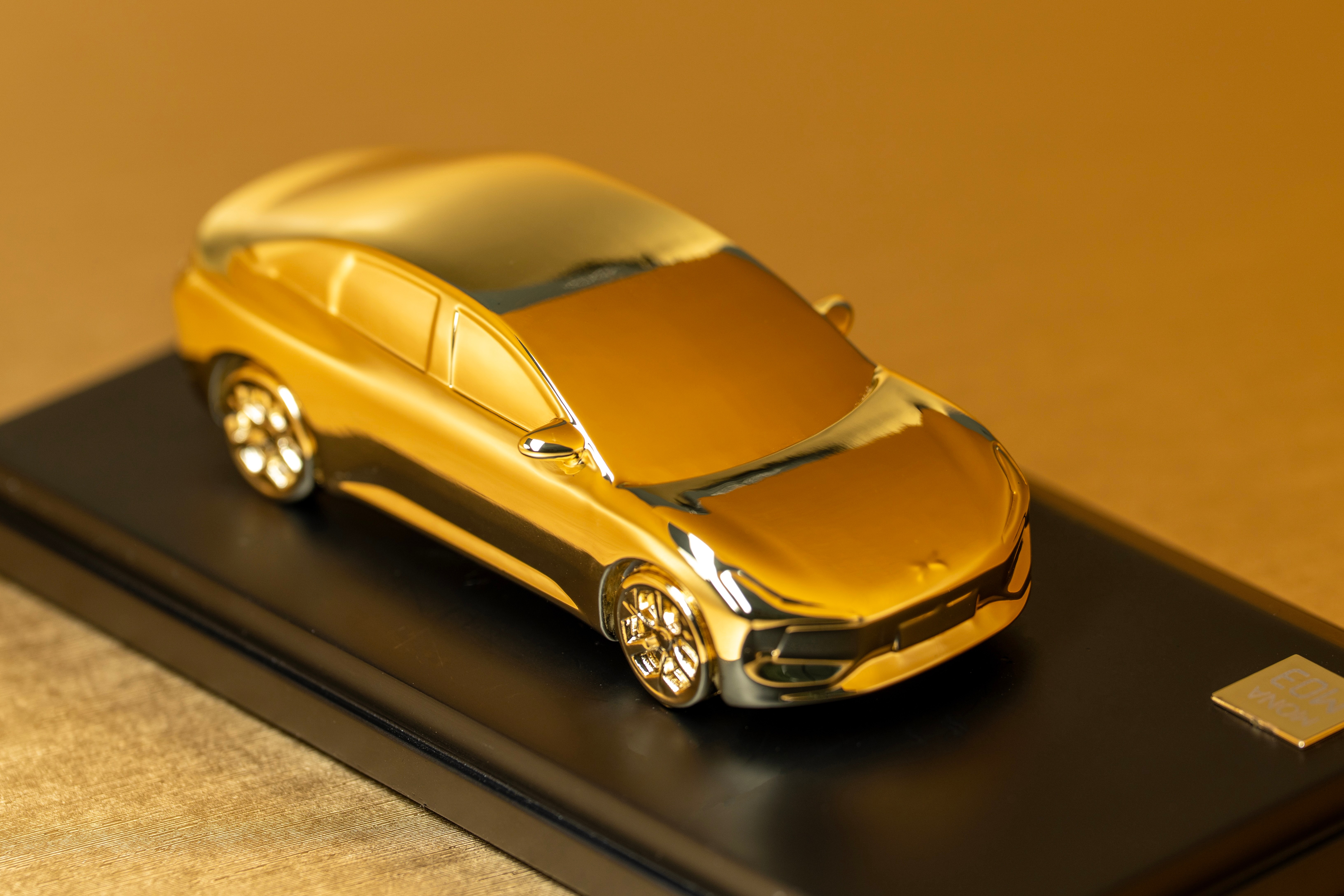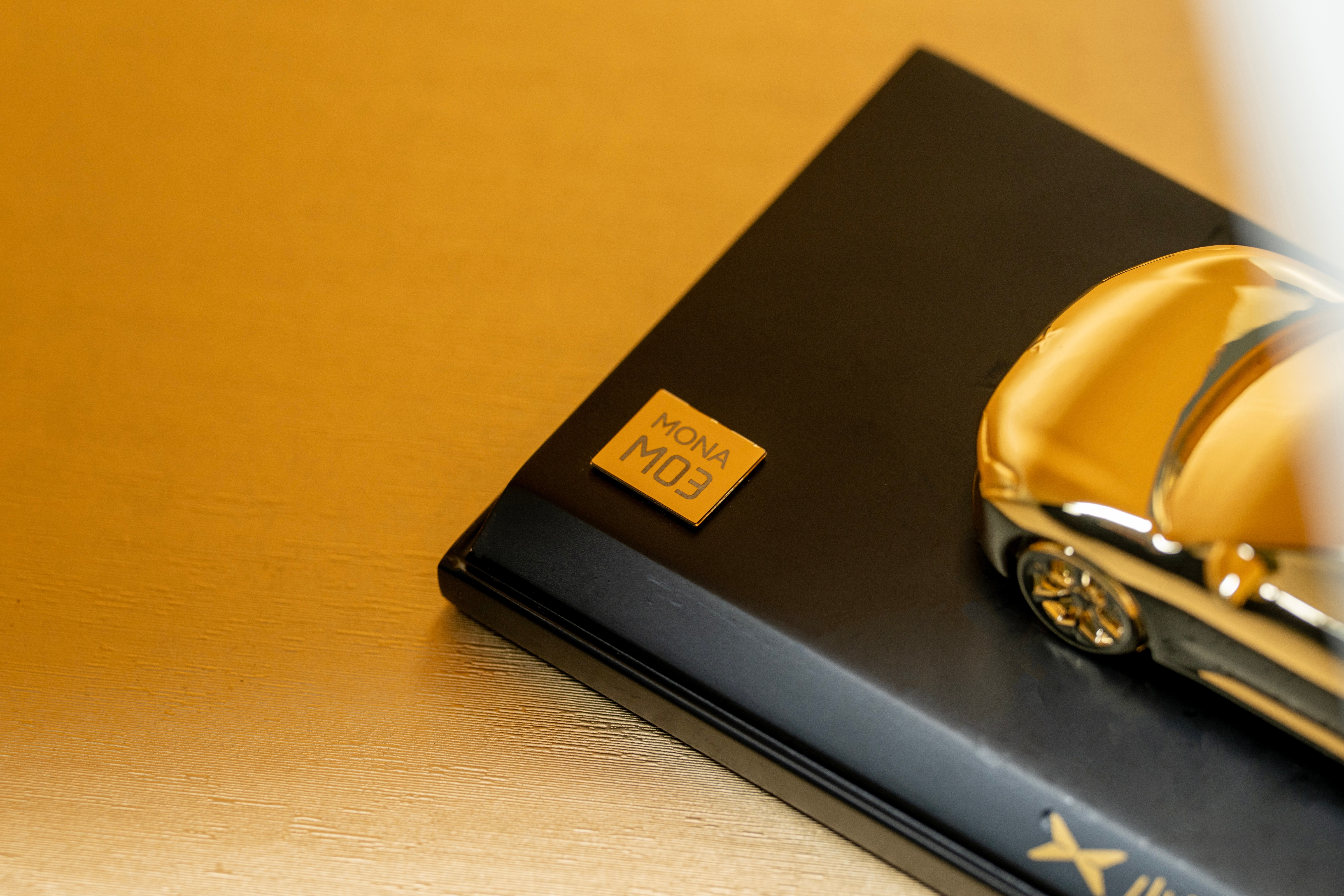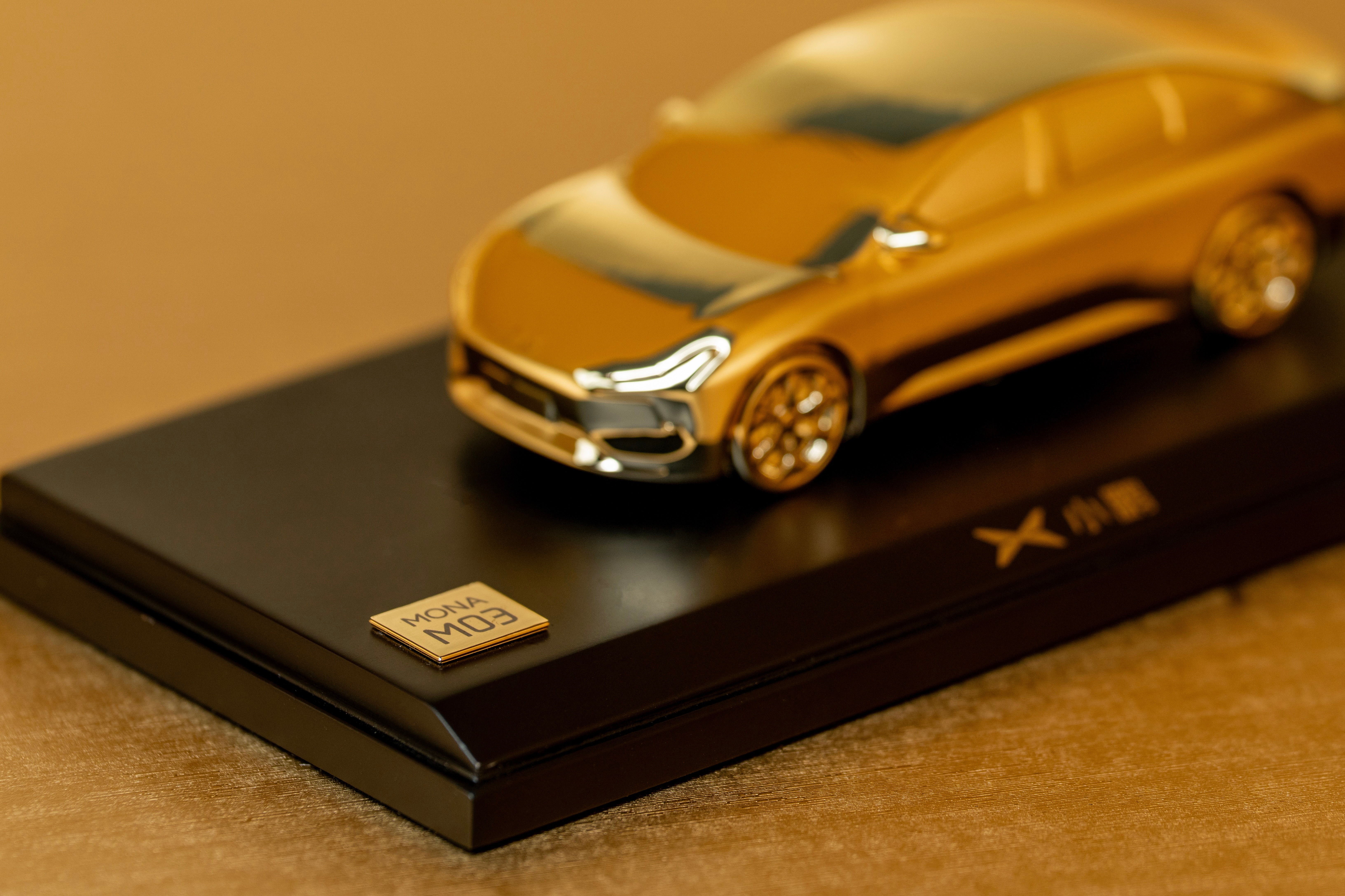 收到小鹏MONA M03 20万辆交付纪念车模,24K镀金,沉甸甸的,窝棚666!