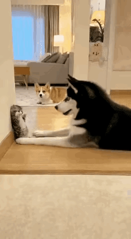 大型“作死现场”!二哈趁猫妈外出拿捏小猫,小猫举手求饶,结果被归来的猫妈劈脸一掌,瞬间怂成狗~