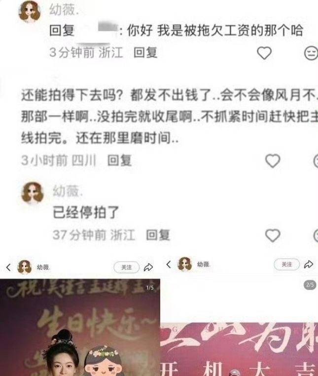 吴谨言和陈哲远的组,这部剧一开始就因为男主女番位的问题闹得很不愉快,于正甚至下场内涵陈哲远,好不容易原阵容开拍了,但是投资没到位,现在因为拖欠工资被拉横幅讨薪,这就是于正说的一番女主单人过会,过了会拉不满投资,那剧就很难制作精良,甚至像现在一样停拍。