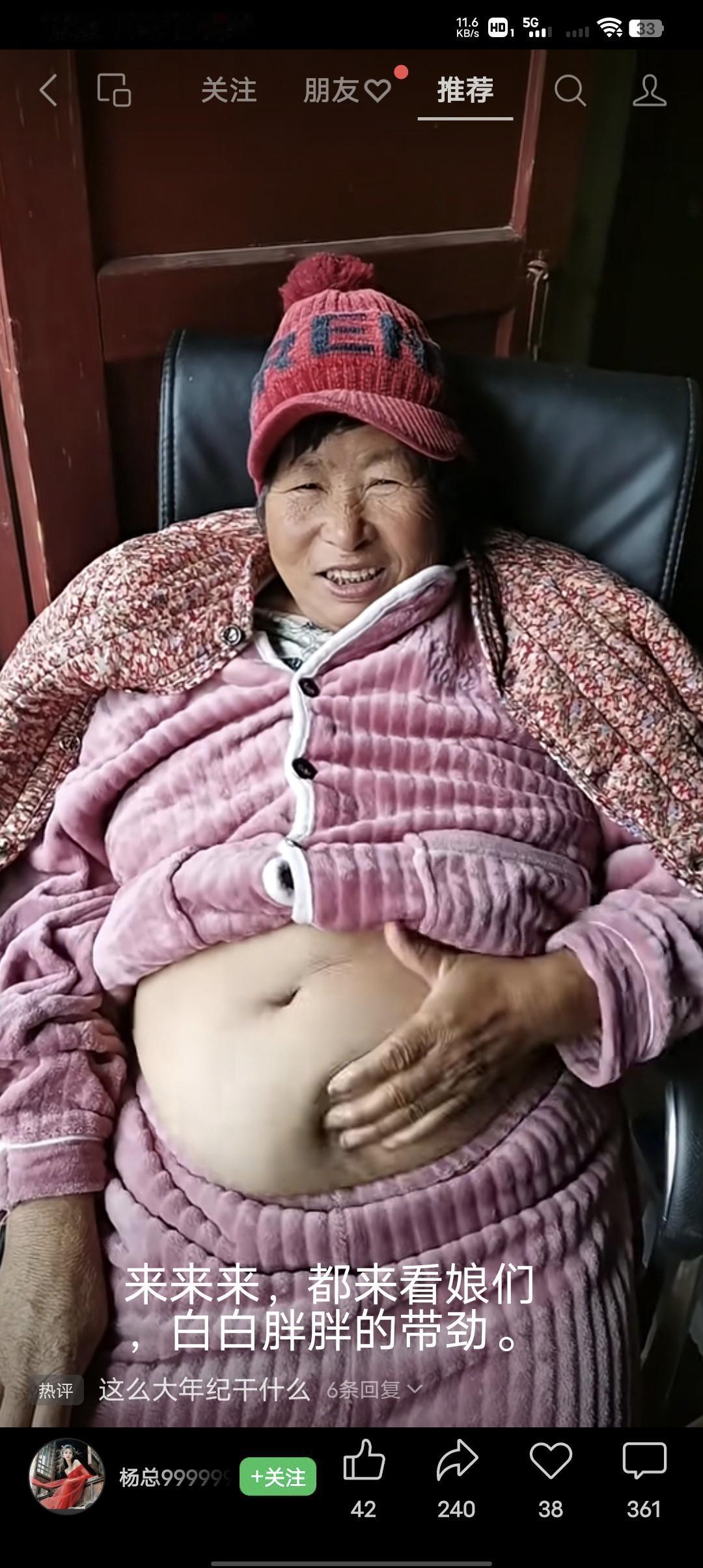 你说,这样大的年纪,就为了那点流量,那可怜的自尊真不要了? 真不知道她是咋想的?家里没人了?一个人都没了?就不怕左邻右舍的戳脊梁骨?我家想知道她敢不敢出门?别人问她那视频咋回事,她咋说?“没事儿,你就当不是我,就当看耍猴的” 真是奇葩啊!人要脸树要皮,人不要脸天下无敌!一点不假!