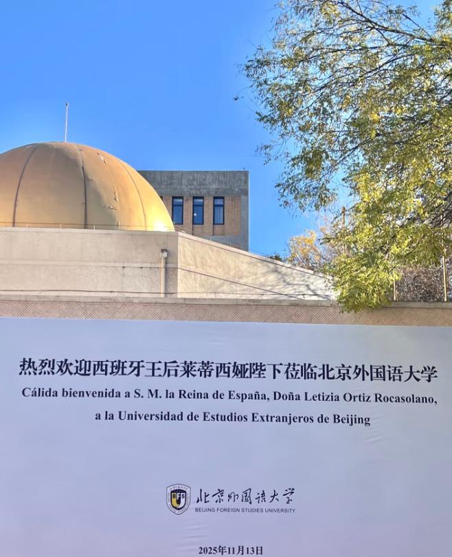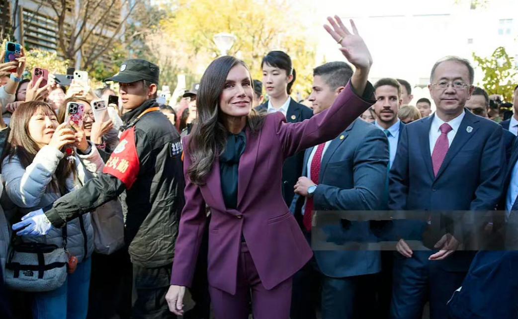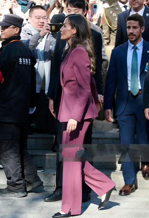 西班牙王后访北京外国语大学,随行女保镖紧跟王后陛下左右成焦点!11月13日,莱蒂齐亚王后抵达北京外国语大学东校区阿语楼,让人没想到的是随行女保镖在人群中个头瞩目,颜值也不差,成为校园里一道靓丽风景线,学生举行手机拍西班牙王后时,保镖小姐姐几乎也都在镜头里。 这个女保镖看起来年龄不大,梳着刘海扎着马尾辫,皮肤白皙可人,颜值虽说比不上女明星,但身材堪比T台上的超模,能给西班牙王后当保镖,也是万里挑一的女生。