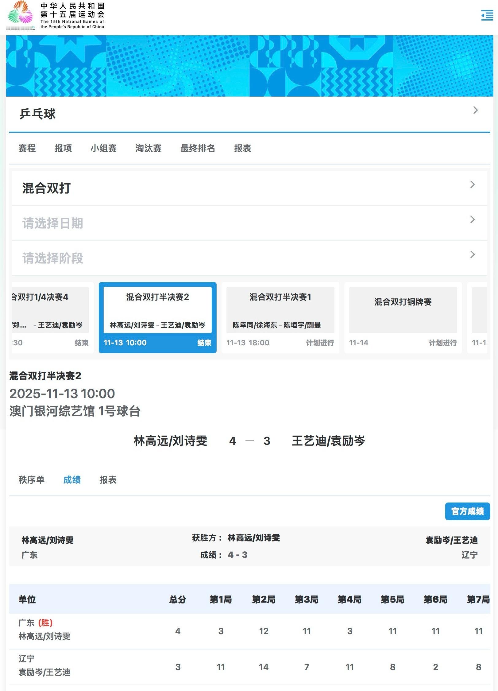 2025大湾区全运会男子团体A组上海1-0江苏周恺/许昕3-1曹彦涛/陈亚轩(1