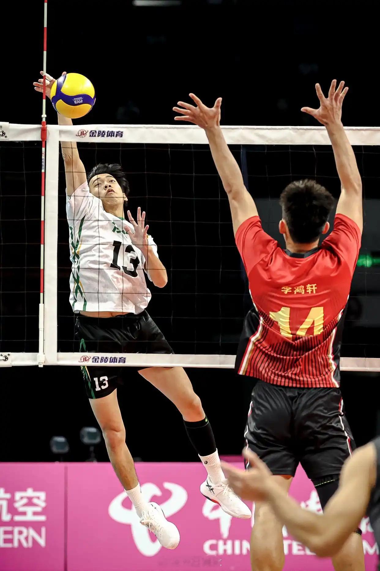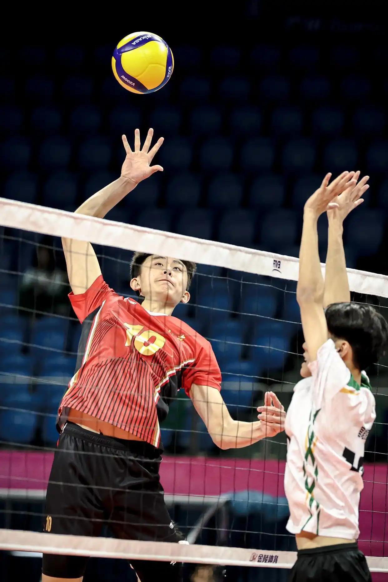 新华社组照: U18男排小组赛B组,11月12日,山东队3-0澳门队(新华社记者 江汉 摄)。