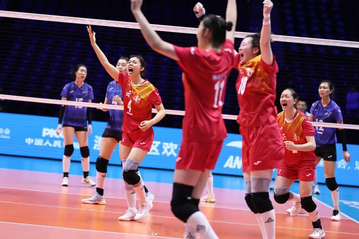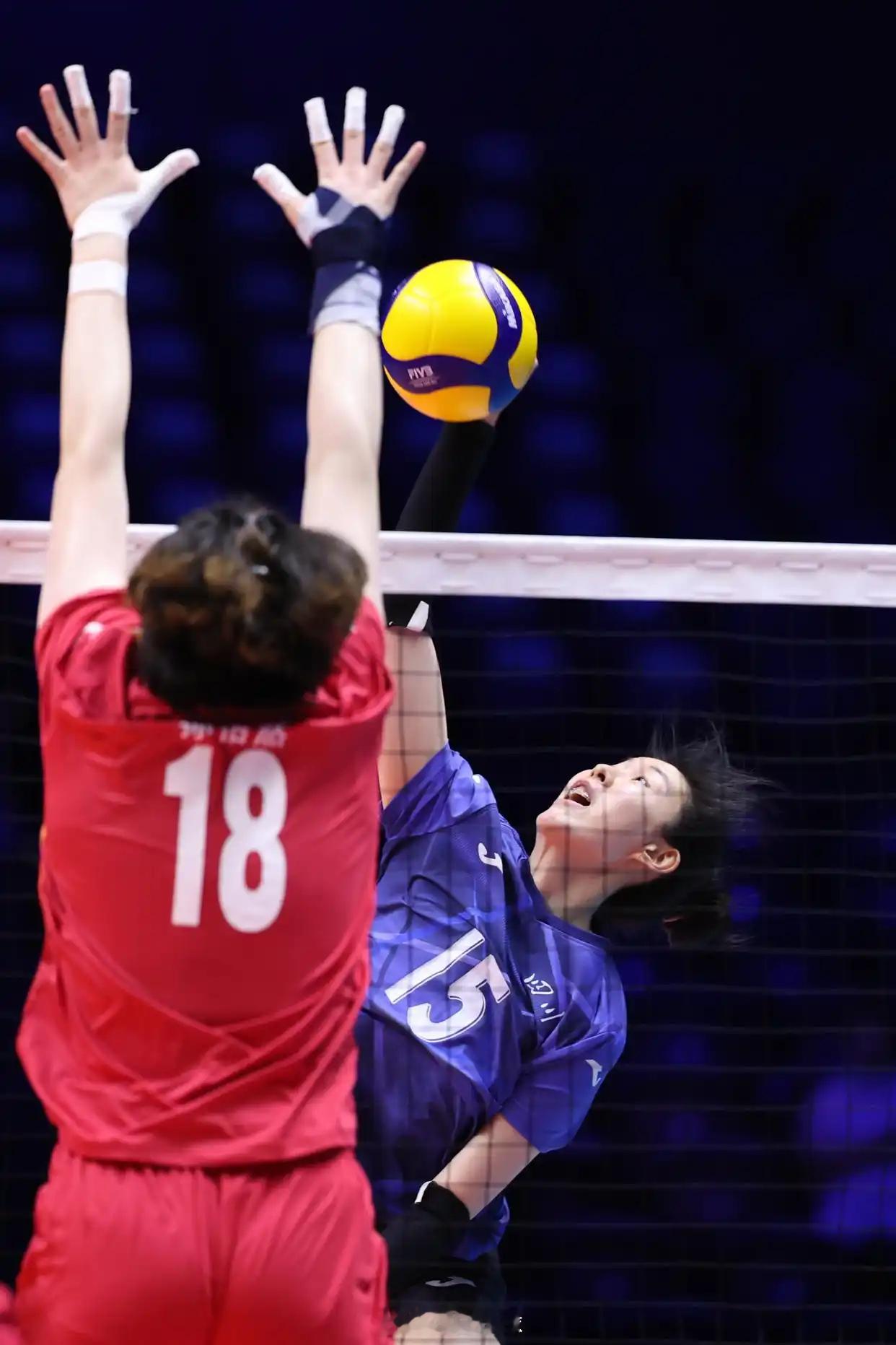 新华社组照: 女排成年组小组赛A组,11月12日,四川女排3-2云南女排(新华社记者 陈斌 摄)。