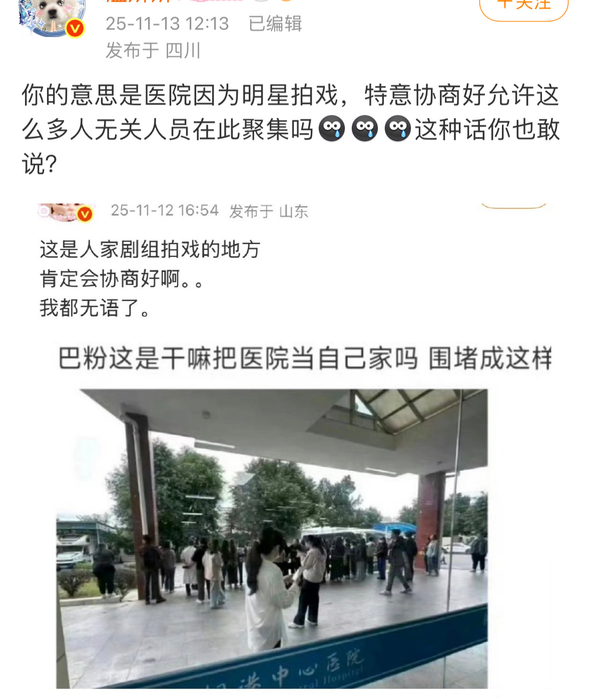 怎么还曲解我的意思你的意思是迪丽热巴生病粉丝来医院看她我解释迪丽热巴在医院戏份,是剧组拍戏而不是生病。。 (最重要的一点都没办法确定门口这些人是谁吧)