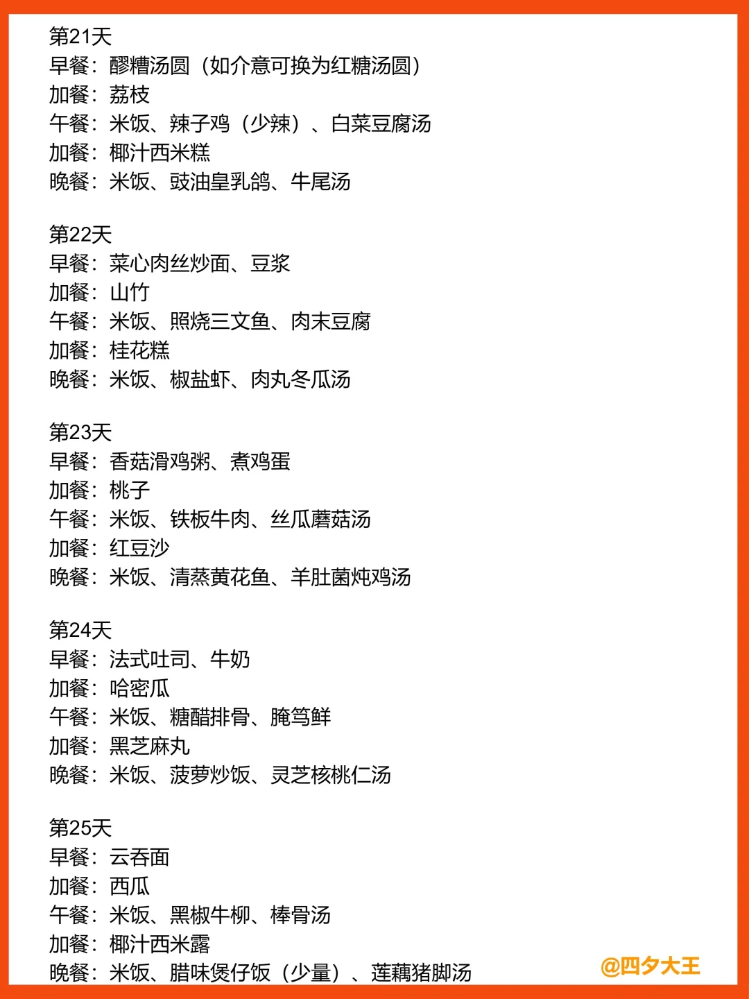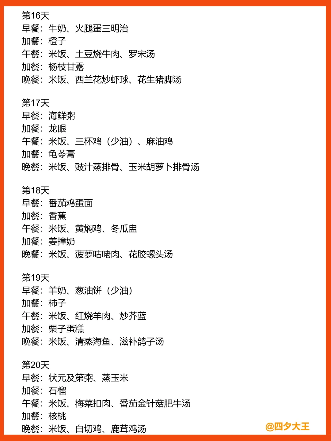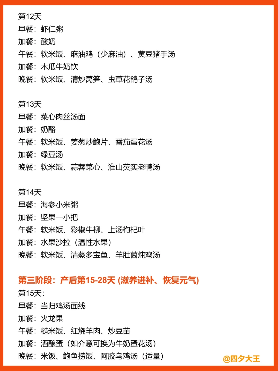 . 不请月嫂、不去月子中的 可以打印出来,每天跟着做~ 不用每天愁吃什么了! 这些都是我每天记录下来的金牌月嫂的餐单,如果你快生了,这份清单赶紧先收藏,以免到时找不到!