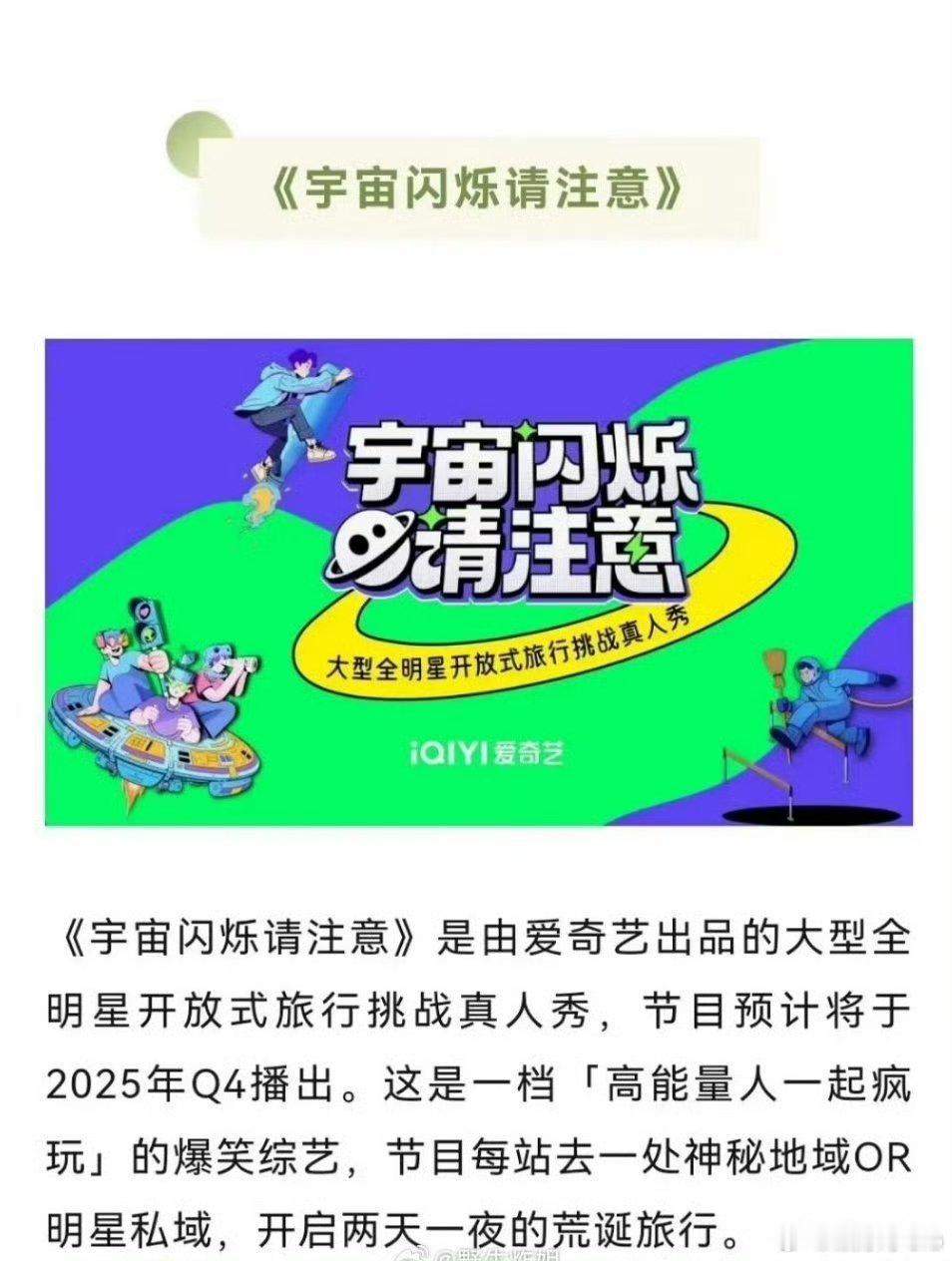 🥝新综艺《宇宙闪烁请注意》拟邀王鹤棣,看着简介这综艺还挺有意思的,感觉会很好玩