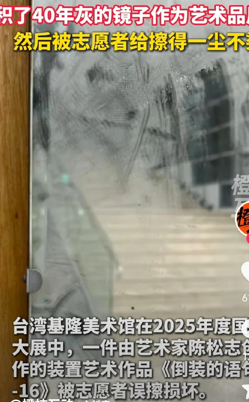 美术馆展品,积尘40年的镜子,没错,一个破镜子上面有了40年的灰,然后呢在美术展览的时候被志愿者,误认为是灰尘,直接是擦掉了。 艺术家表示这志愿者毁了他的作品,作品已经是不能在复原了,这艺术果然是不能让人理解。 40年的灰尘就这样没了?这作品的意义呢是“无常”的见证,其实有时候意外也是艺术的另一种说法。 很多人不懂艺术,我们也是不太懂,根本不了解40年的灰尘附着在镜子上,有什么好看的。看到的还是灰尘下的自己。 到底是炒作还是崇拜,网友表示,我家爷爷60年的夜壶岂不是最大的艺术品?对此你们认为了?