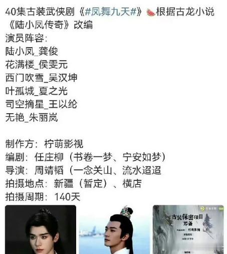 网传《凤舞九天》男主定为龚俊,班底含周靖韬导演与任庄柳编剧,明年2月下旬开机
