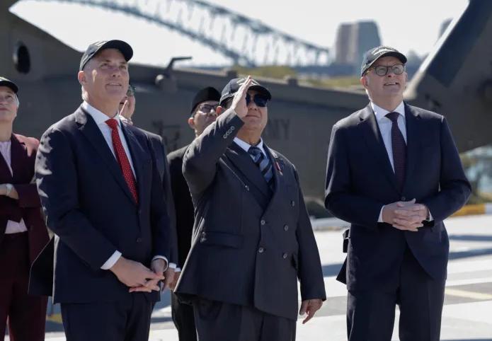 印尼领导人普拉博沃与澳大利亚总理一同出现在悉尼花园岛的澳大利亚皇家海军基地。他们宣布达成了一项具有里程碑意义的防务协议,以加强两国的战略合作。 在新的协议框架下,澳大利亚和印度尼西亚将定期就防务安全事务进行磋商,内容包括情报共享、联合训练、海上和航空安全合作等。 有意思的是,这是普拉博沃上任以来首次访问澳大利亚,而普拉博沃最近一次以国防部长和当选总统的身份访问澳大利亚,是在2024年8月,不难看出,双方互动颇为频繁。