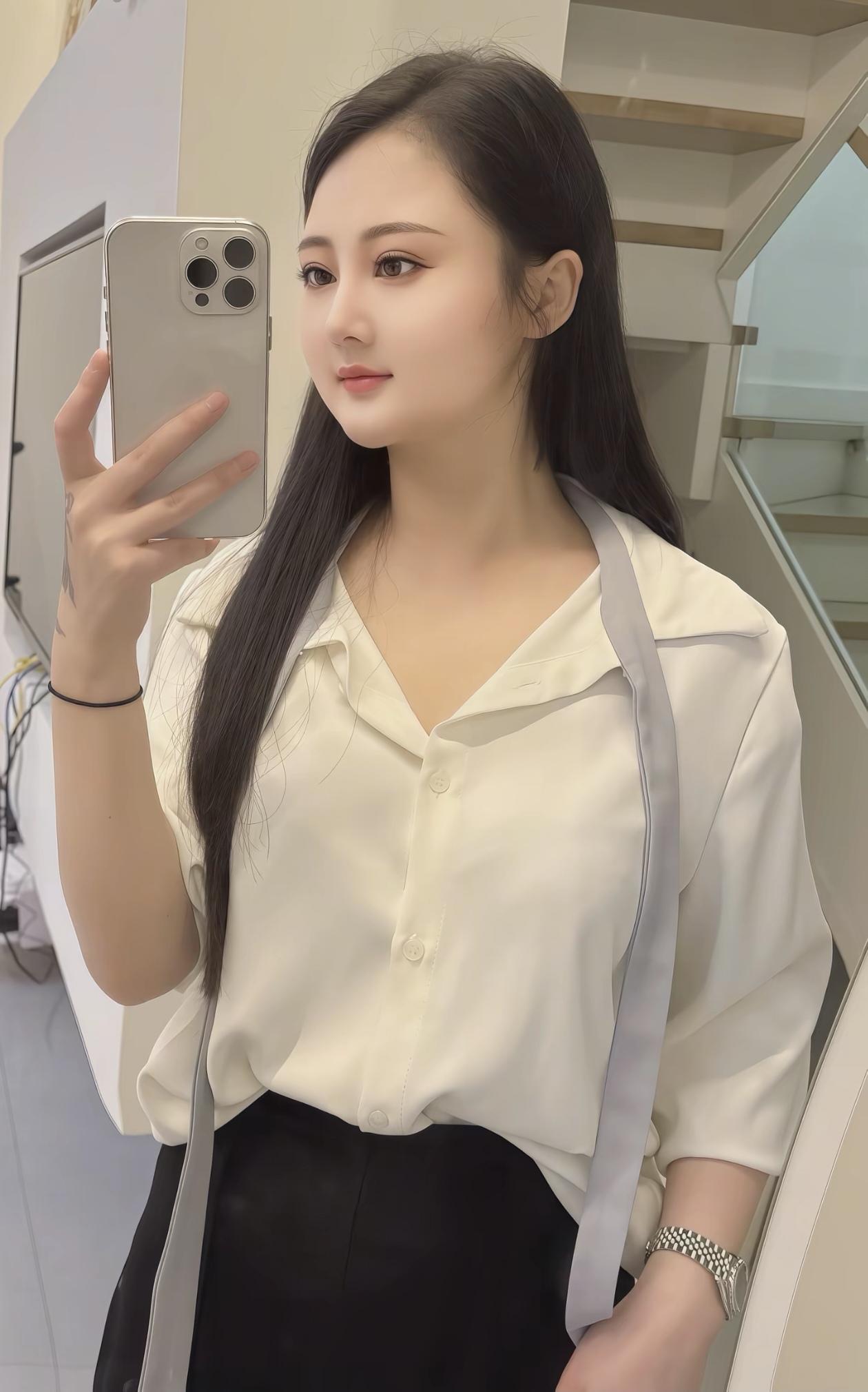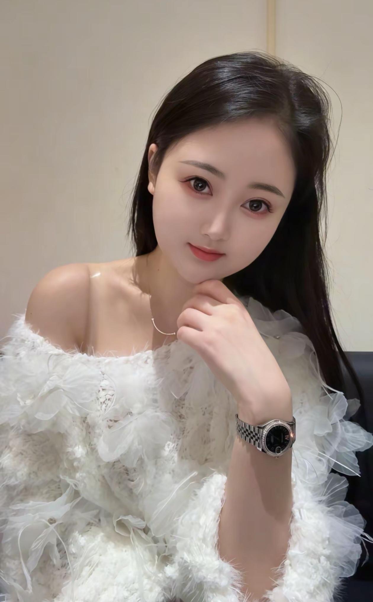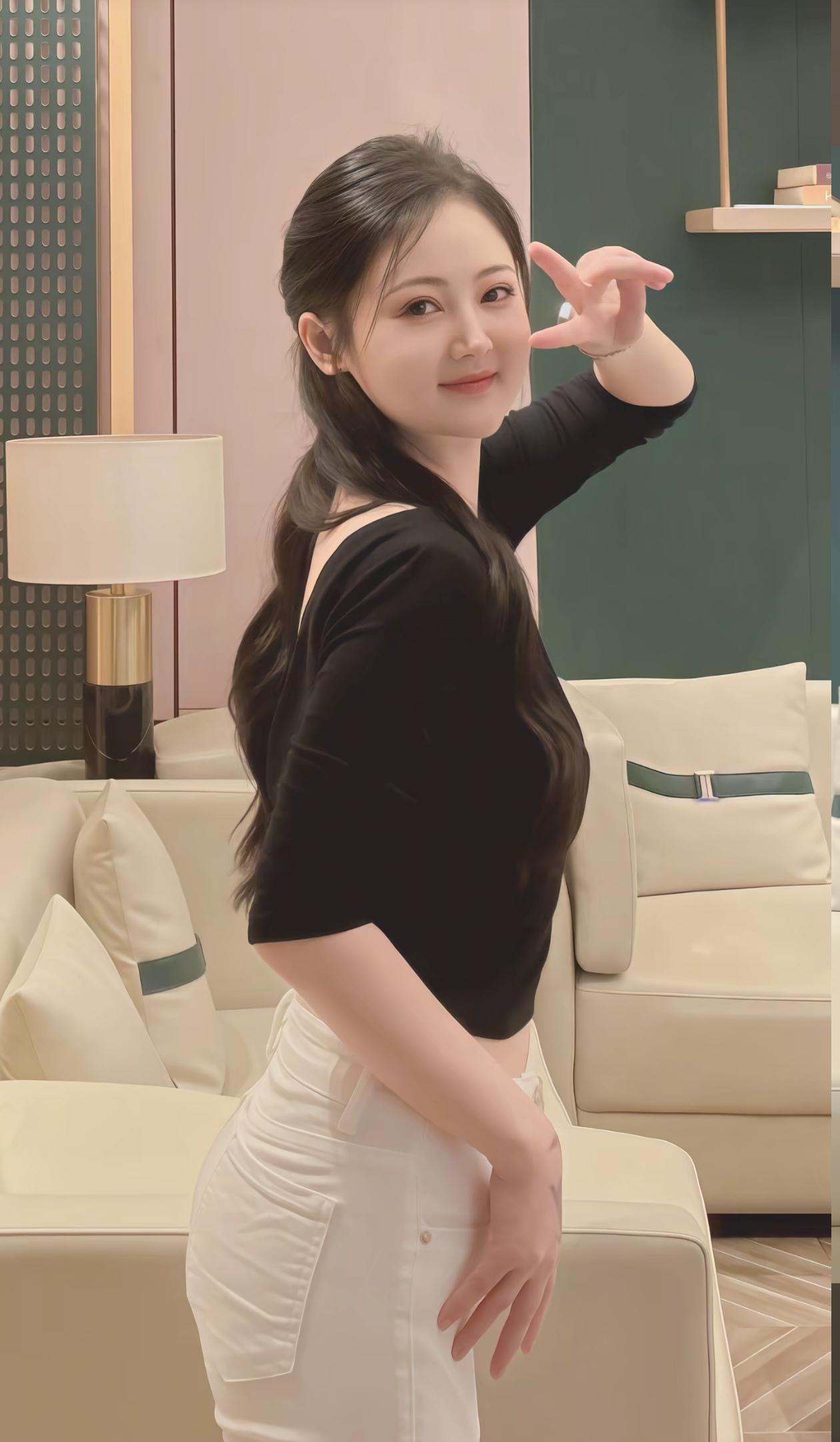 温柔甜美的自拍,白色毛衣搭配黑色裤子,简约又时尚!💕✨