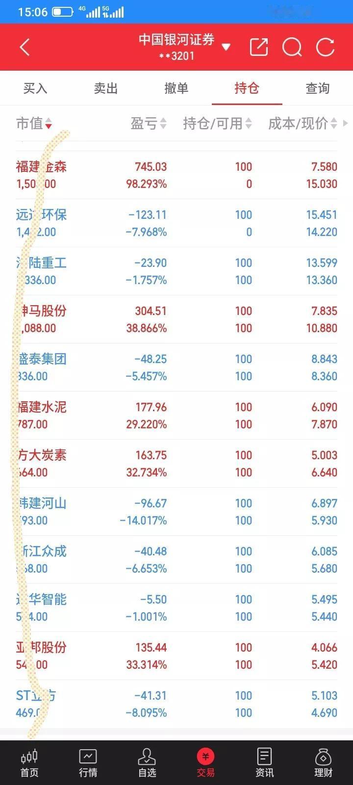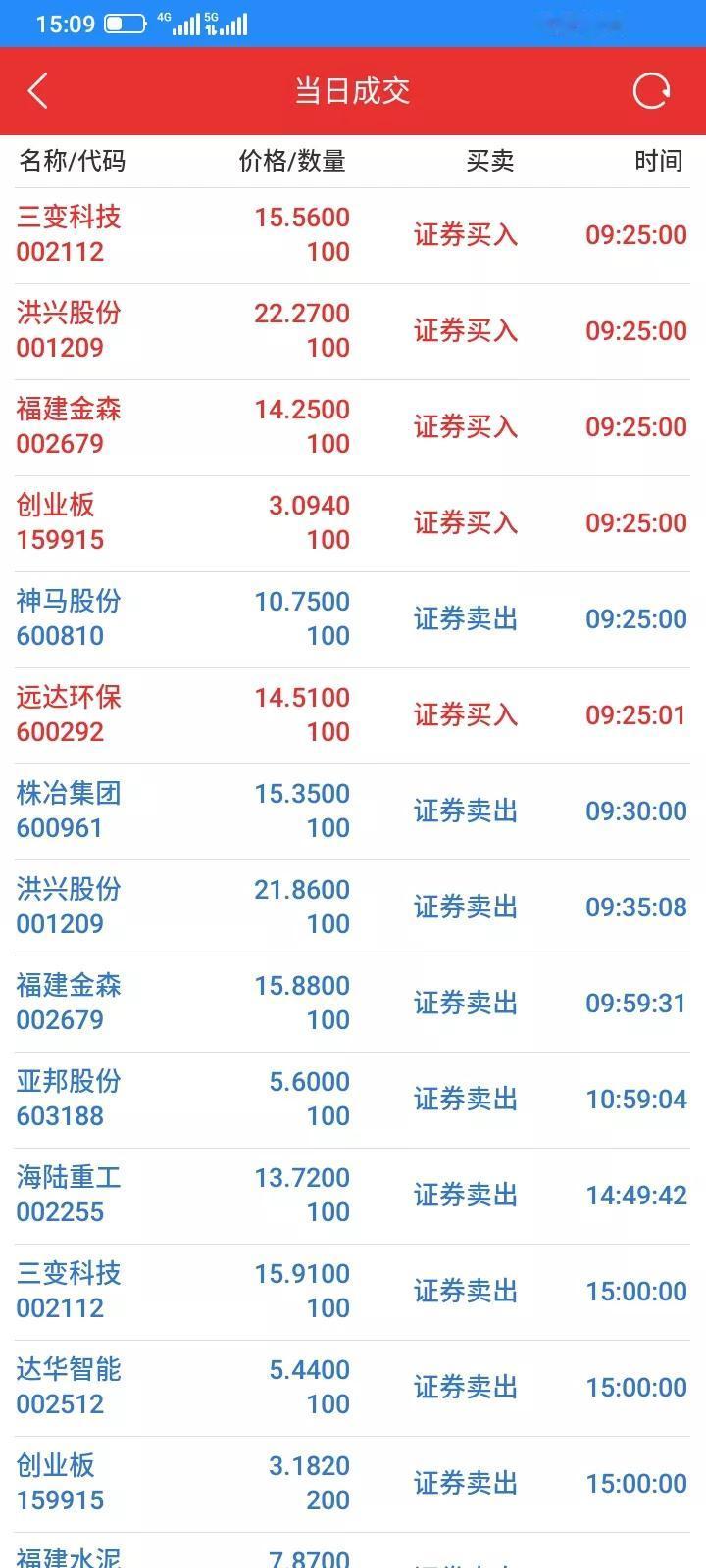 2025.11.13,今天上证指数再创新高,大部分股票上涨,我持有的股票也大部分反弹上涨,但是还是做错了不少,早上开盘止损了两只股票,做错了,少卖了几十块钱,持有的大部分股票都是冲高回落,浮盈一场,今天3只股票,曾经涨停,但是都没有封住涨停,唯一值得庆幸的是,涨停的都涨停价卖掉100股,否则又少损失很多。 早上集合竞价买入了一些股票,以15.56买入100股三变,收盘以15.91卖掉100股,做t成功,赚35块钱,没有卖在最高价,少卖了几十块钱。 以22.27买入100股洪兴,开盘就不断下跌,跌幅比较大,下跌中触发了止损条件单,自动以21.86止损卖掉100股,卖掉之后下跌到21.65就不再下跌,触底反弹上涨,又被成功的洗出来了,造成高买低卖,做t失败,又多亏了41块钱,这只股票最多的时候亏了500多块,收盘还亏463元。两天做t都失败了,多亏了一百多块钱。 以14.25买入100股金森,很快涨停,以涨停价15.88卖掉100股,做t成功,赚163元,但是涨停板没有封住多久就开板了,收盘才跌了6个点下来。 以3.094买入100股创业板,收盘以3.182卖掉200股,做t成功,加上昨天的100股一起t出去了,两天创业板做t赚17块钱。 以14.51买入100股远达,买错了,不断下跌,收盘以14.22卖掉100股,做t失败,多亏了29块钱,这只股票两天做t都失败了,明天再继续t。 今天t一共t了5只股票,都是100股,一共赚136块钱,也好,当做了一天日结。 昨天亏损比较多,一晚上都没有睡好,想来想去,修改了一下交易计划。今后全部股票都只保留100股,然后天天做t,于是开盘以10.75卖掉100股神马,以15.35卖掉100股株冶,都卖在地板上了,卖掉之后都上涨,又少卖了几十块钱。 收盘把200股的股票全部卖掉100股,除了ETF外,股票全部都只留100股,然后天天做t。 今天亚邦也涨停了,以涨停价5.60卖掉100股,下午又破板了。以涨停价13.72卖掉100股海陆,又没有封住涨停。收盘也跌下来了。 收盘以5.44卖掉100股达华,以7.87卖掉100股福建水泥,以22.64卖掉100股格尔,以5.68卖掉100股众成,以4.69卖掉100股立方,以8.36卖掉100股盛泰,以5.93卖掉100股韩建,6.64卖掉100股方大,都不计成本,不管盈亏的止损卖掉了100股,留下100股。 今天总市值3.76万元,总资产5.66万元,今天总体账户反弹回本986元,把昨天亏损的赚回来了,降低一些仓位,降低风险。A股指数 指数要冲高 股大盘指数 股市指数 收盘指数 指数拉抬 上证收益指数 收盘以