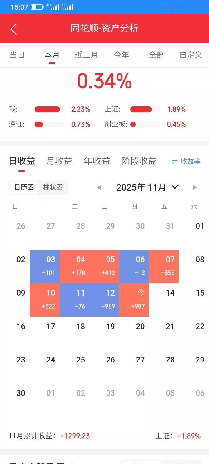 2025.11.13,今天上证指数再创新高,大部分股票上涨,我持有的股票也大部分