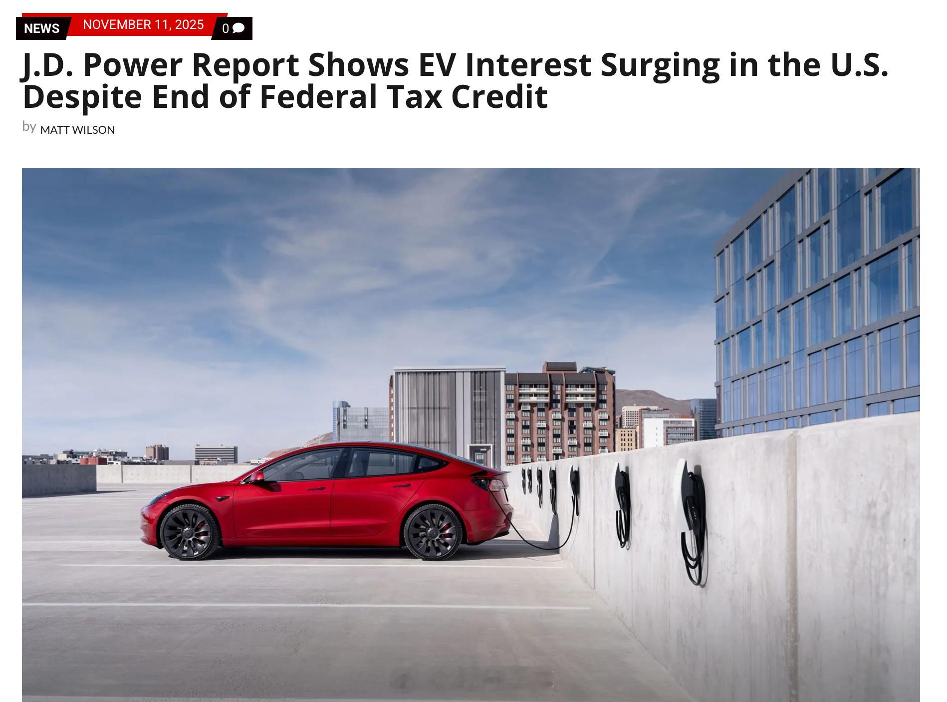 J.D.Power 的报告显示,在联邦电动车购车税收优惠结束后,美国消费者对电动车的购买意愿不仅没有下降,反而显著提升。在 10 月份,表示「非常有可能」考虑购买电动车的活跃购车者比例升至 24.2%,创下 自 2025 年 1 月以来的最高水平。马斯克转发了这条消息,配文:Interesting。