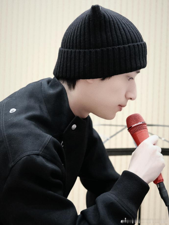 严浩翔素颜搭配黑色毛线帽与 All Black 穿搭,冷峻潮酷气质突出,这一造型已成他的标志性形象。