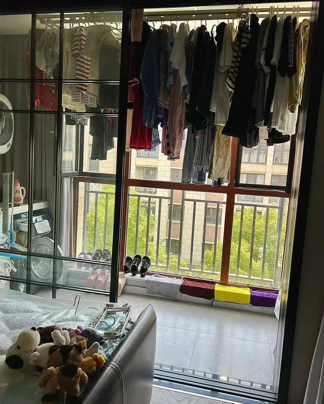 买商品房最怕冬天的阴雨天,一家老小的衣服挂在客厅的阳台上把屋子里的光线全挡住了,大白天都要开灯,这可怎么办呀? 好不容易花大价钱在城里买了个房子,现在晒衣服成了个难事,不仅小区的外面不能晒衣服,就是自家房子也不能晒在阳台的外面,只能晒在室内。夏天因为衣服比较薄,加上天气气温高,有风吹一吹晚上就干了!可是冬天的衣服很厚重,而且天气气温低,虽然洗衣机脱水了但一个礼拜还干不了。 最要命的是晒在阳台把整个光线都遮住了,大白天住在屋里面都没啥光线,给人的感觉很压抑,真的一点都不好!不像我们以前在农村住,房子前面就有大院子,院子里面搞几根竹竿随时都可以晒衣服,即使家里人口再多都不怕。有朋友建议我买一个带烘干的洗衣机,但是听说又非常耗电,所以现在非常纠结!不知道我们住城里的朋友到冬天是怎么把衣服晾干的?有没有好的方法互相分享一下。