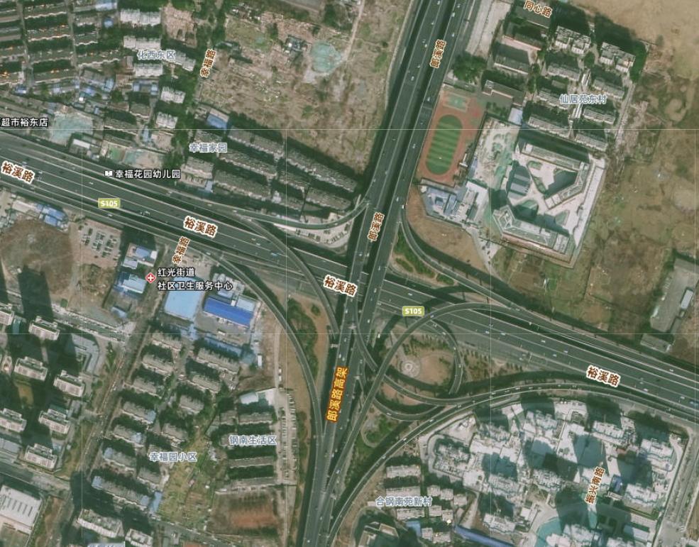 曾经一度烂尾的高架互通立交。 郎溪路高架(新东二环)与裕溪路高架互通。曾经因拆迁