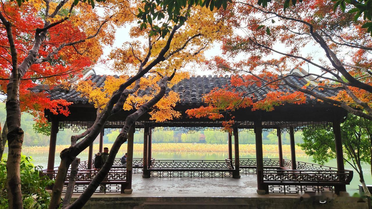 红黄警告:西湖的秋天(11月下旬至12月中旬) 1,永福寺 2,大佛寺遗址 3,横河桥 4,茶叶博物馆 5,郭庄 6,虎跑 7,太子湾 8,杭州大厦天桥 9,孤山 10,绿水芙蕖亭 11,花港 12,断桥