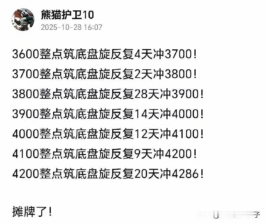 今天的股市,超出了很多人的预判,10年的新高,而且守在了关键点位4025点以上。 今天的成交量也达到2万亿的体量。 这一波,估计得持续到12月初。毕竟多面开花,也是难得。除了年底获利出逃这最后一次下行,其他的都不能阻止大A股的牛市! 你今天涨多少?