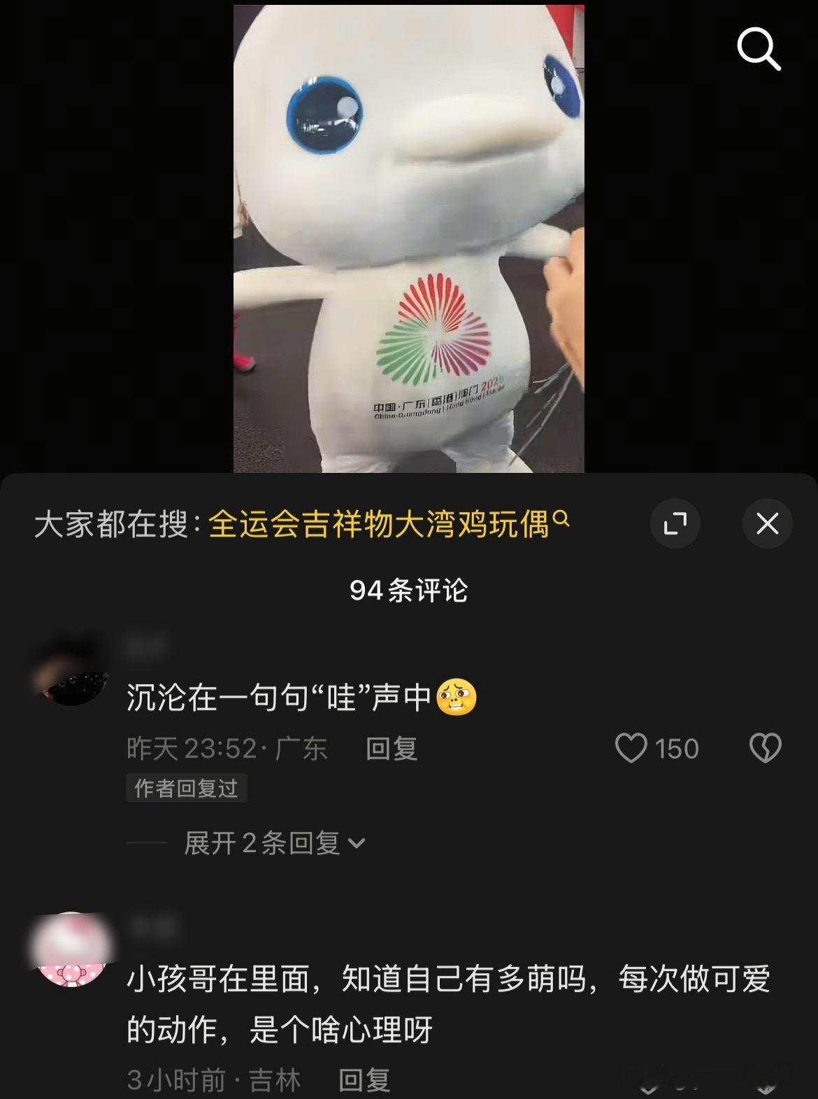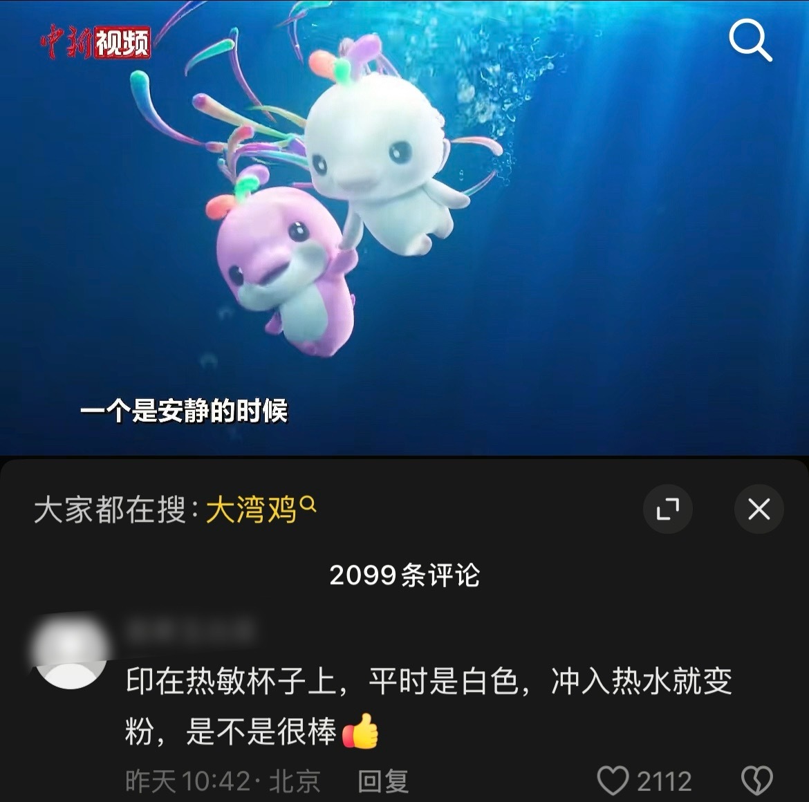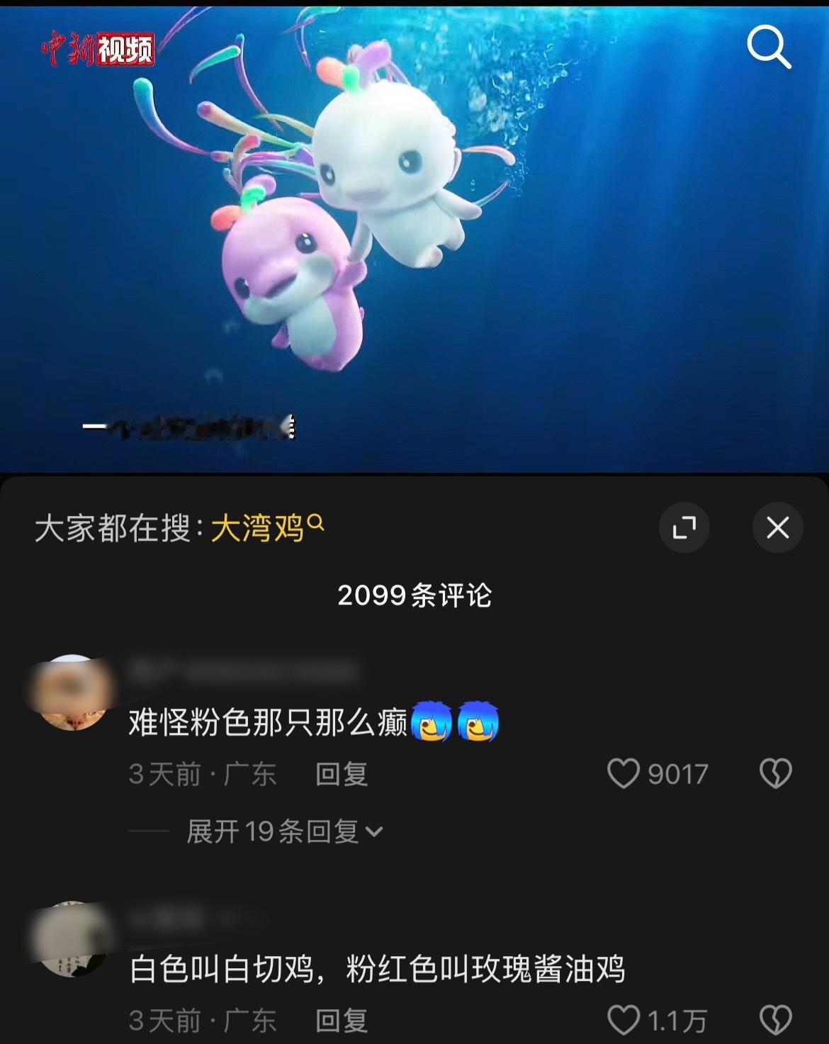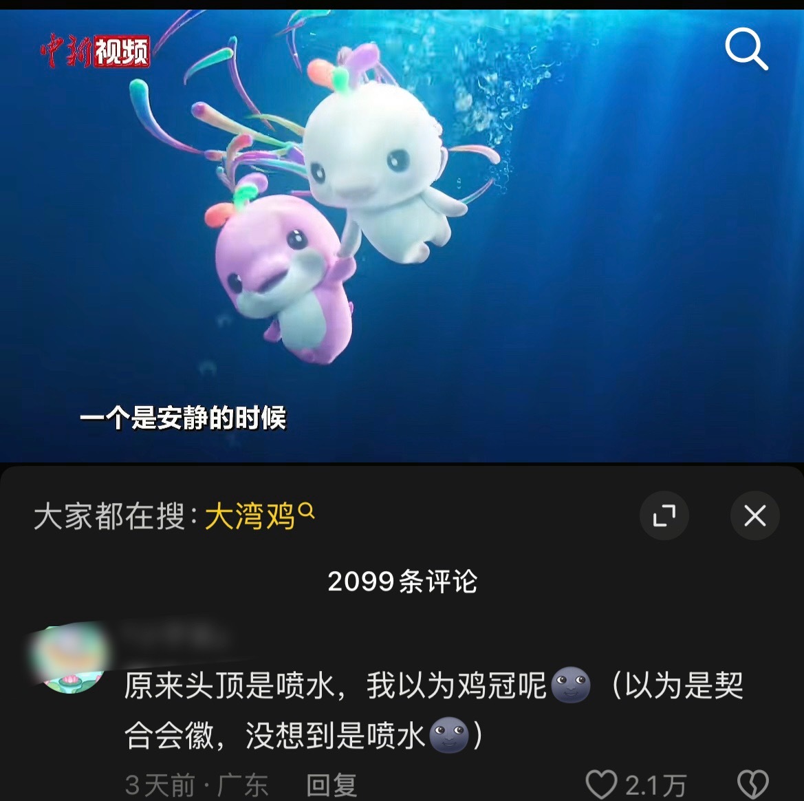 小孩哥太会了在头套里都不忘互动比心,在哇声中迷失谁还不知道粉色是中华白海豚运动的时候皮肤充血状态,不许叫“玫瑰酱油鸡”,辟谣头上水柱不是鸡冠是代表粤港澳三地(木棉花的红色、紫荆花的紫色和莲花的绿色),两头身比例尽显萌态