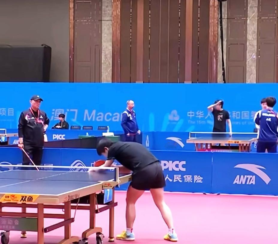 新鲜的莎莎又在挥拍训练, 拉伸必须得脚掰直, 这核心真稳。 全运会训练场莎莎又在挥拍训练, 她和王楚钦同框训练。 远远望去黄友政在陪王楚钦陪练, 因为王楚钦晚上对战林高远。 小杨指导站在莎莎的后边守护着她, 国际赛场有Coco, 国内赛场有小杨, 莎莎真是太幸福了。 四强已经出席了四位, 希望今晚莎莎个大头能顺利晋级。 带定位晒今日生活 我的今日状态:😁轻松愉快 我这里的天气:☀️晴天