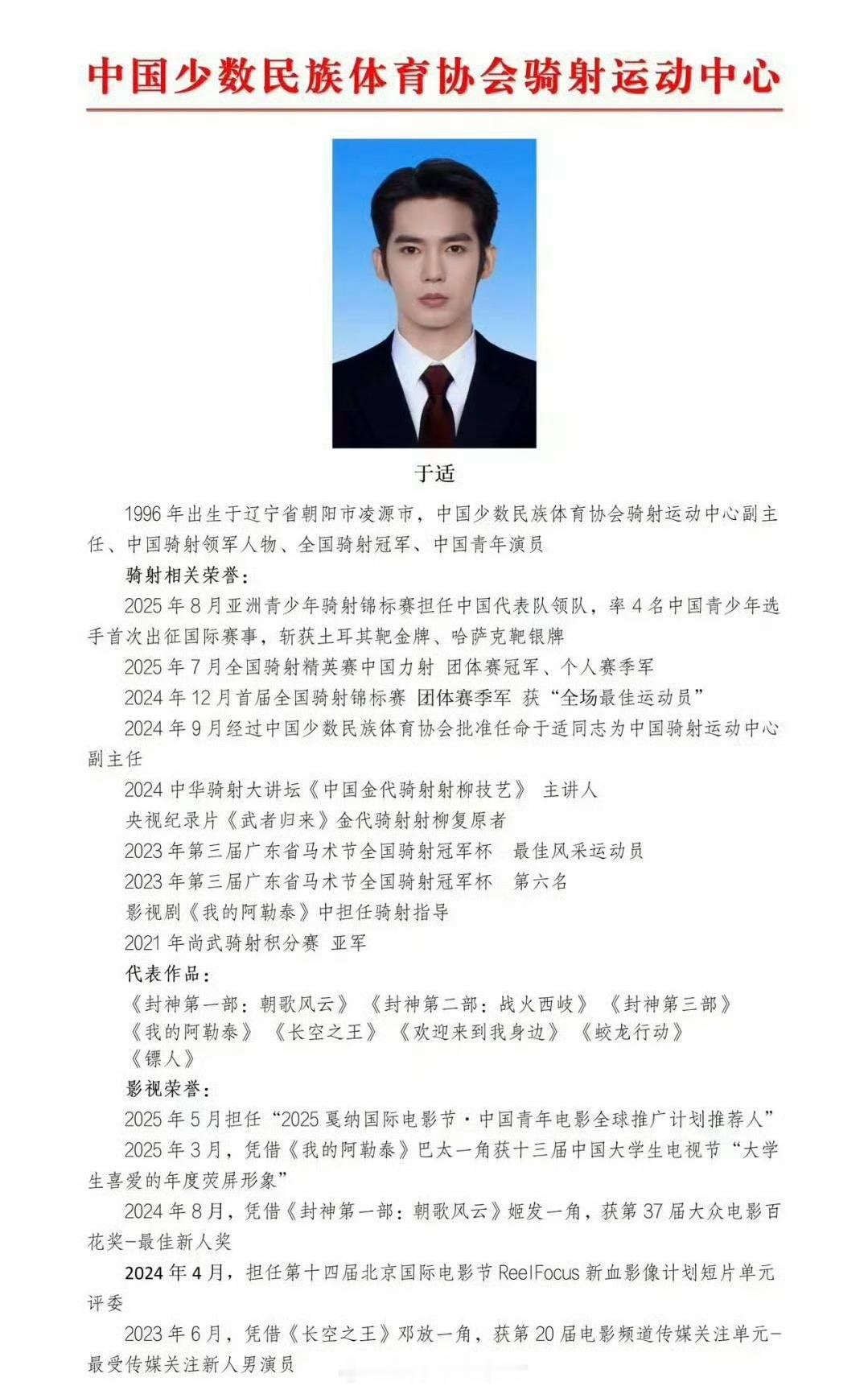 于适担任中国少数民族体育协会马文化运动委员会骑射运动中心执行主任。