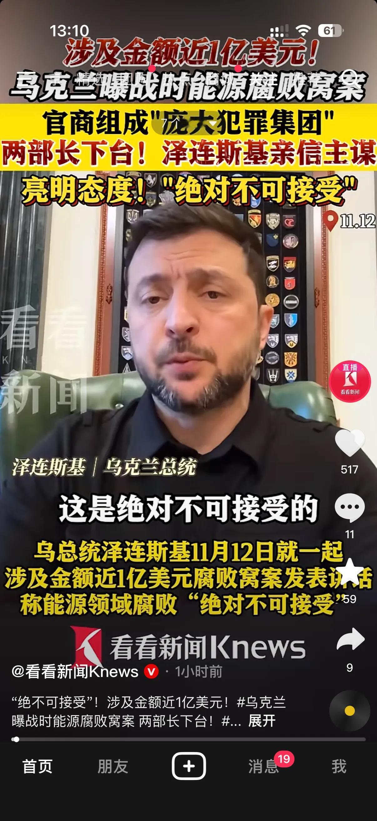乌克兰最大贪污案竟然是泽连斯基心腹干的! 你能想象么,乌克兰忙着和俄罗斯打仗的国家竟然能发生贪污一个亿美金的贪污案! 要不说大炮一响,黄金万两呢,战争财是真好发啊! 而且犯下如此大案的贪污犯竟然都是泽连斯基的心腹,要不说朝中有人好做官呢,这自己老大是总统,贪污起来就是方便! 现在乌克兰的司法部长和能源部长已经递交了辞呈,但是两人都不承认涉嫌腐败! 可以说这个贪污案的爆发,让原本就岌岌可危的乌克兰政权更加的雪上加霜了,原本对泽连斯基就存在不信任的欧盟,现在估计就更不敢在轻易的对乌克兰追加援助基金了! 毕竟不能保证自己要援助的军费有多少能花到战场上!