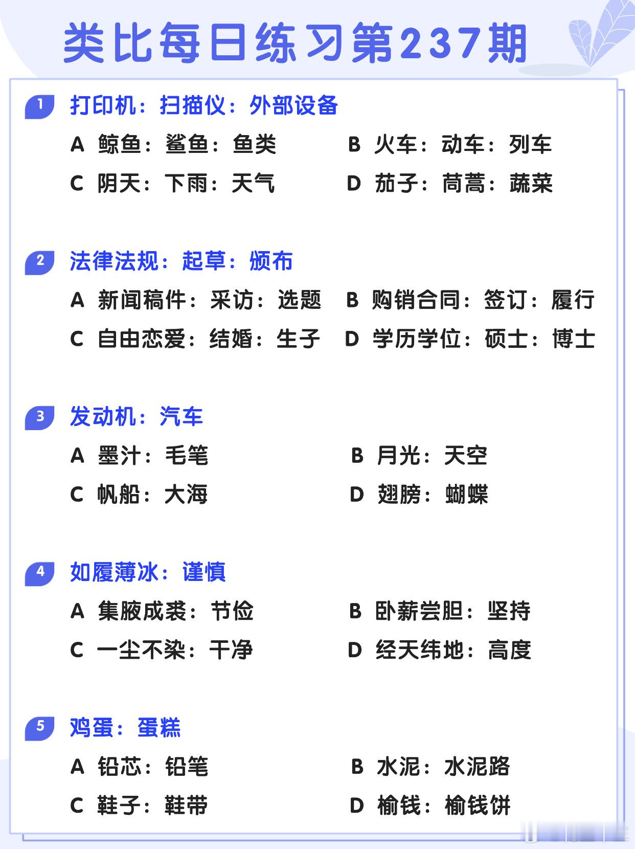 图推类比每日练习第237期图推难度:☆☆类比难度:☆☆