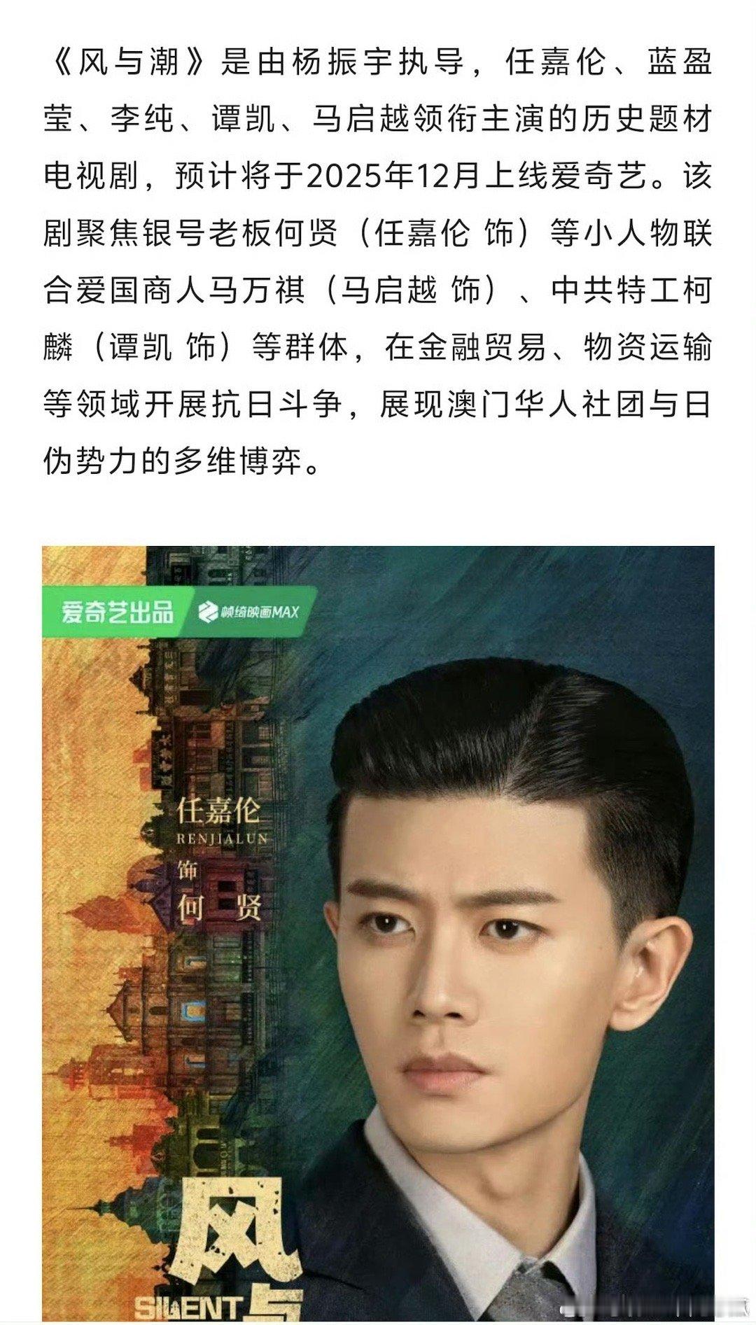 任嘉伦《风与潮》开启招商了,预定个12月播出