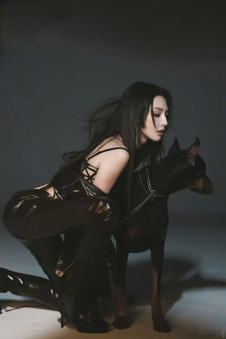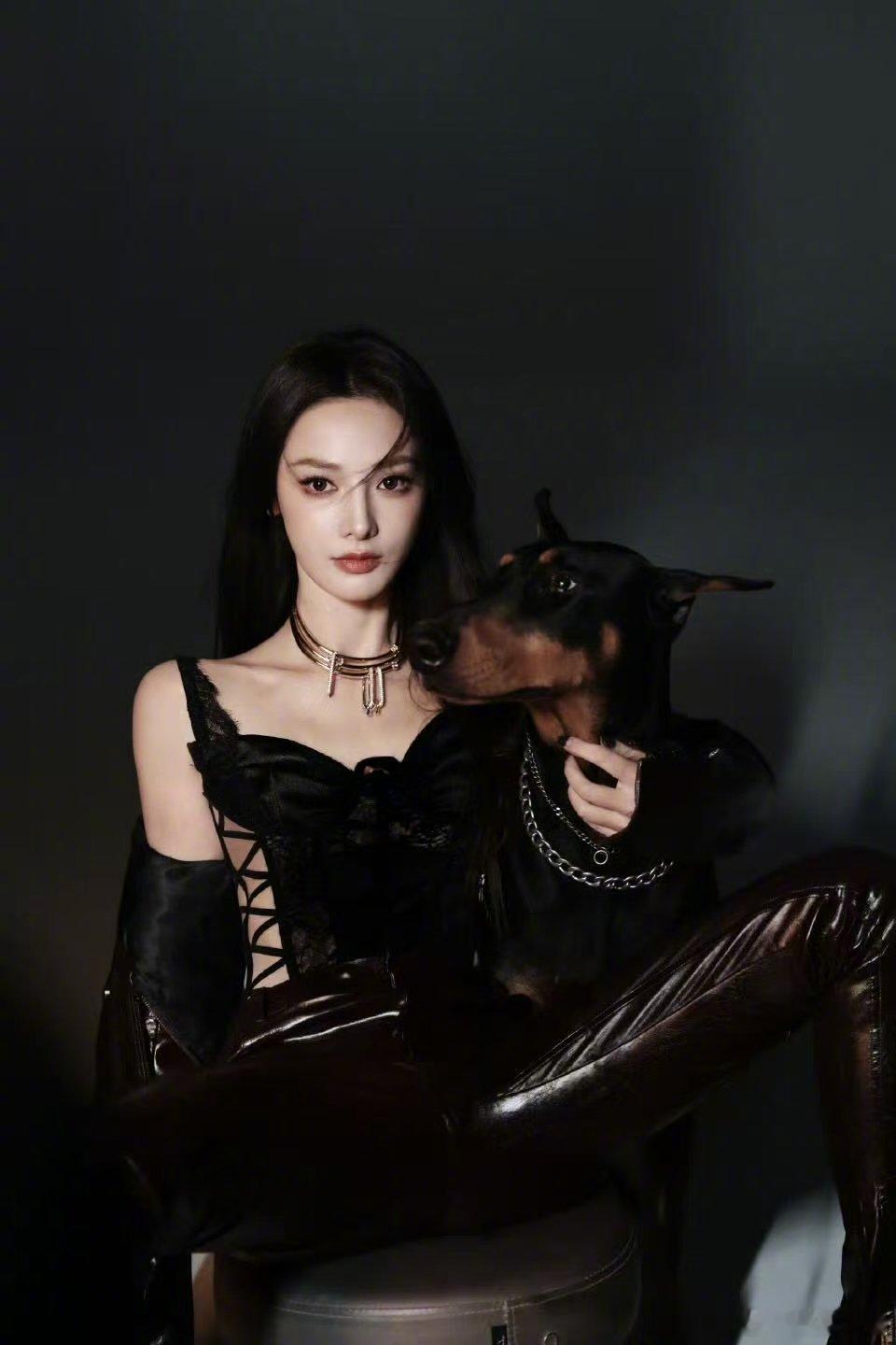 论玩梗只服彭小苒!穿上黑衣和杜宾狗拍酷飒大片,经她一句"真姐狗"点评,瞬间画风突