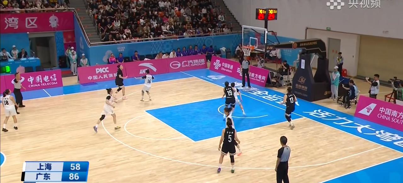 黄思静、杨力维姐妹,再加武桐桐火力十足。 全运会女子篮球比赛太精彩!11月13日下午,在十五运会女篮成年组1/4决赛里,广东队以102比73大胜上海队,强势晋级四强。首节广东队就内外开花,30比14奠定领先优势,武桐桐三分4投3中,中锋陈明伶延续稳定状态,强攻、“吃饼”上篮都很厉害。第二节主帅郑薇换下杨舒宇、杨力维姐妹,安排替补出场,让主力休息。上海队虽在刘雪园(20+)带领下追了些分,但第三节广东队加大防守强度,大哥黄思静快攻妙传陈明伶得分。此前9月5日半决赛,广东女篮也曾87比54大胜上海队挺进决赛,这实力真是没话说!期待广东队后续表现。 广东篮球队 广东全运女篮 女子篮球比赛