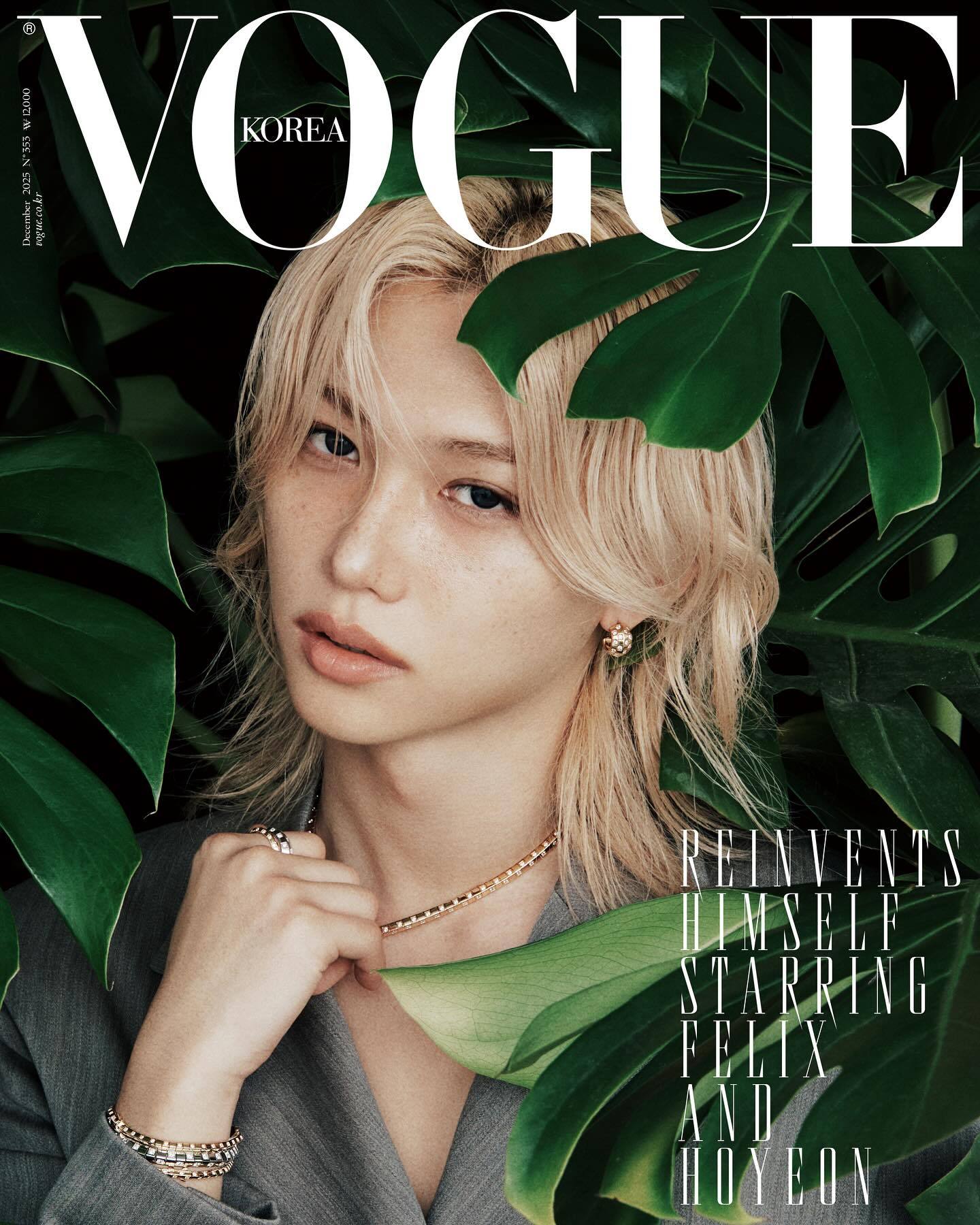 Felix李龙馥登上韩版《VOGUE》2025年12月闭年刊封面,以男星身份解锁顶级女刊,厉害的,依然是来自合作品牌Louis Vuitton的支持,顶奢加持果然不一样|摄影:Park JongHa/造型:Kwon Hyeni