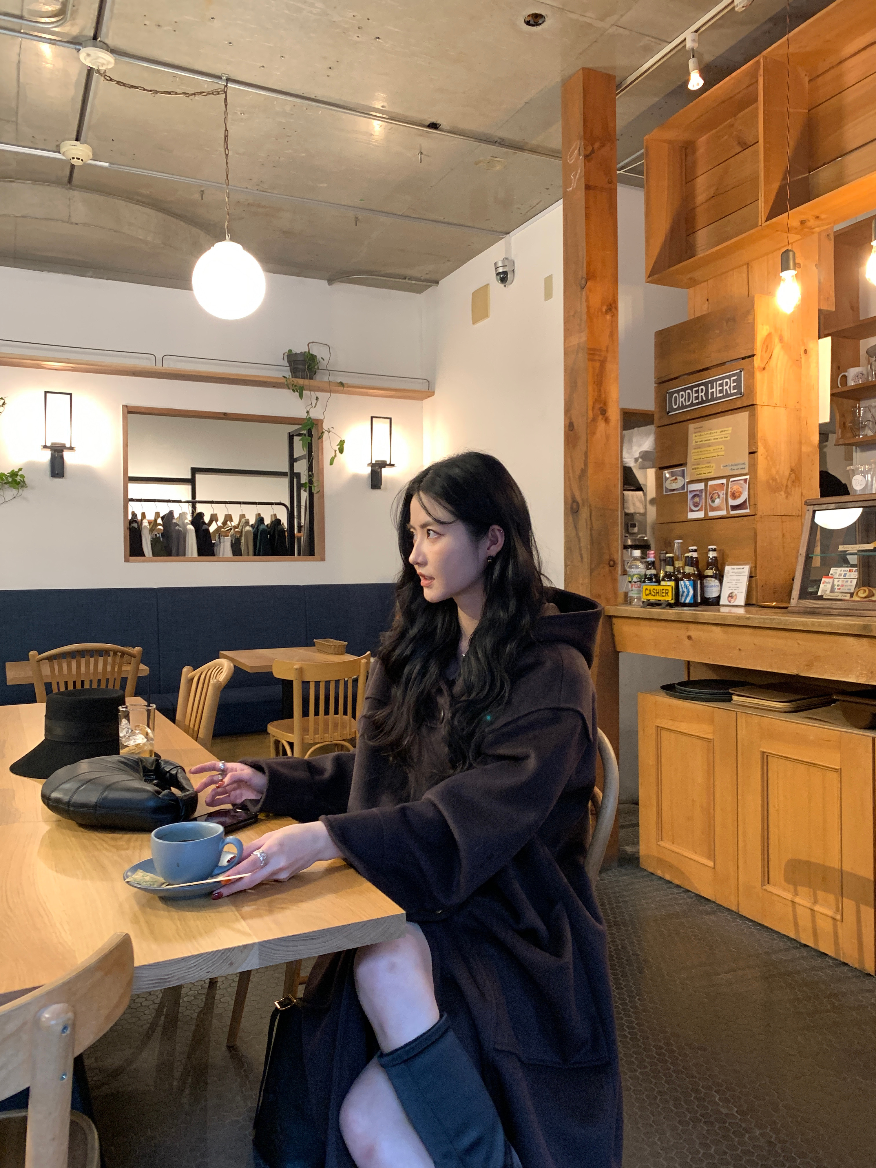 这个颜色真的巨美的有点小斗篷的感觉 帽子戴上有点小巫师又乖巧又女人 那天我怎么拍都觉得好漂亮