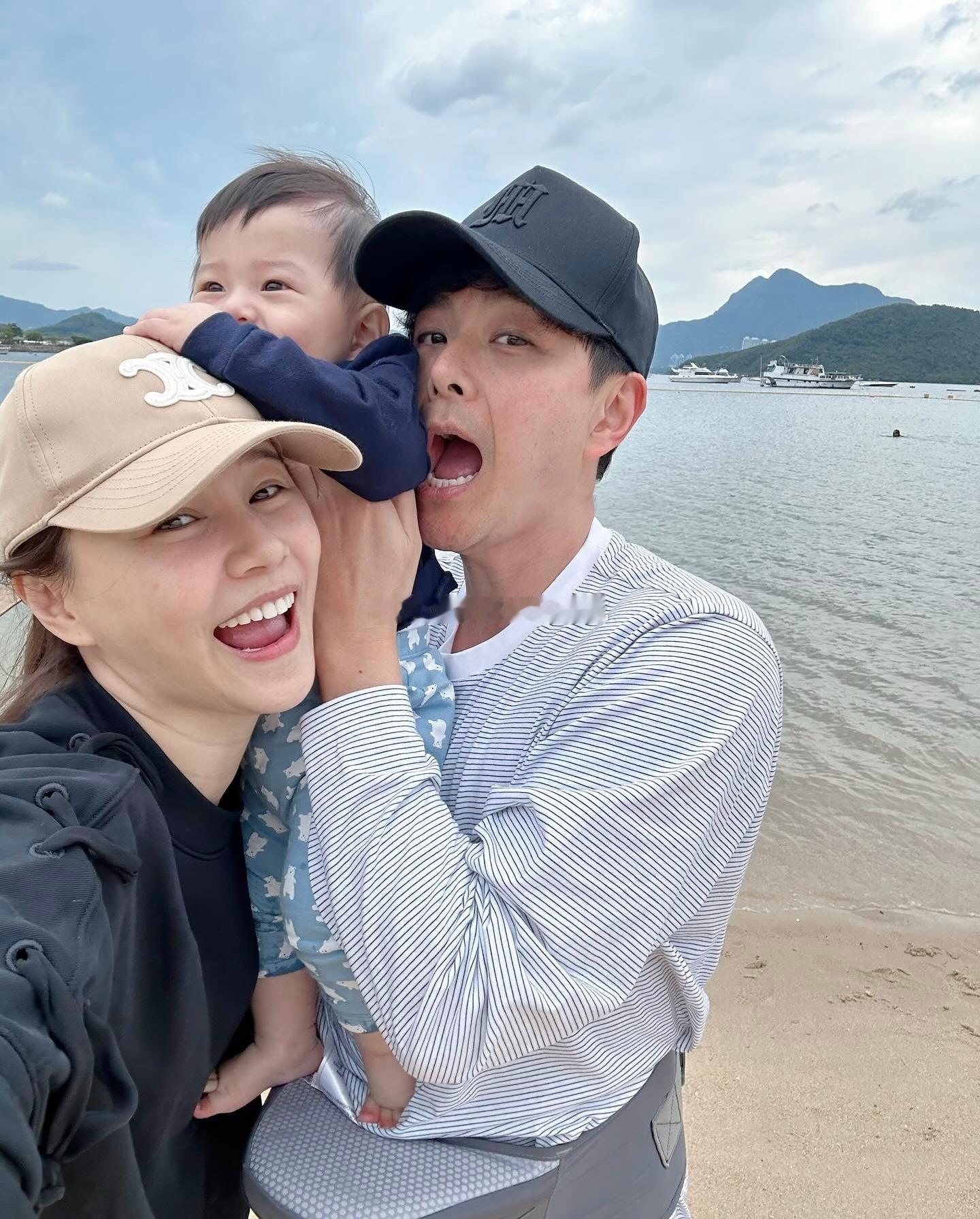 萧正楠黄翠如带儿子萧哈哈到沙滩玩耍👦🏻