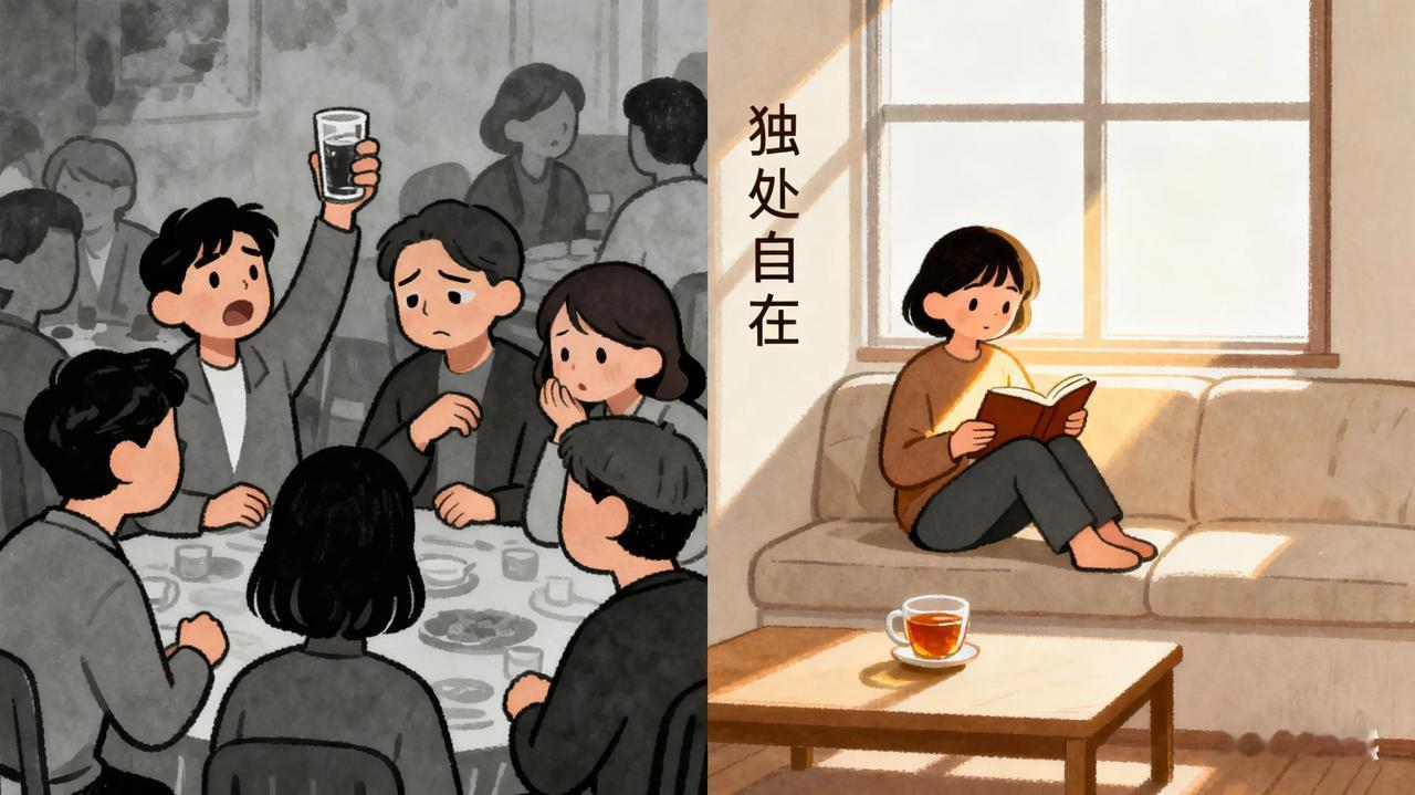 看到一段通透的话: “喜欢独处的原因就是: 不想跟有钱人论吃喝, 不想听没钱人诉苦, 也不想听别人搬弄是非, 更不想听到流言蜚语, 还是一个人呆着舒服。” 不用刻意迎合谁的话题,不用勉强挤出违心的笑意,不必为了合群消耗精力,也不必在闲言碎语里揣摩人心。 一杯茶、一本书,或是对着窗外发会儿呆,日子安静得刚刚好。没有攀比的焦虑,没有是非的纠缠,也没有情绪的内耗,心是稳的,神是清的。 独处不是孤僻,而是给自己留一片清净天地。不用应付虚与委蛇的社交,不用卷入家长里短的纷争,把时间还给自己,把情绪调成静音模式。 那些无效的热闹终会散场,唯有独处时的自在最是珍贵。守着一方小天地,不慌不忙,不忧不惧,这样的日子,简单却踏实,平淡也安心。