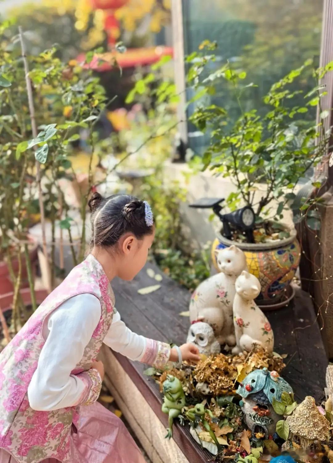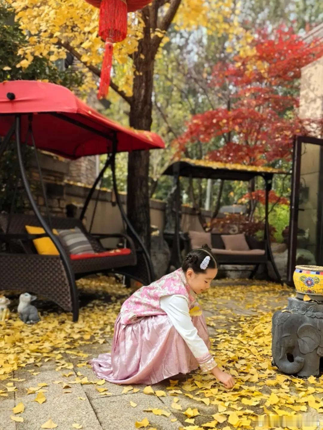 赵文卓妻女北京别墅赏秋,院里满是落叶,仨子女只有小女儿留身边!