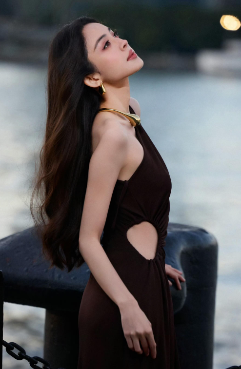 古力娜扎最新照片,女神太美了[比心] 这组照片真的美到失语!娜扎这波港风氛围感直接拉满~深棕裙装衬得肤白貌美,颈间的金属装饰又添了几分冷艳,江边的光影一衬,整个人都在发光✨
