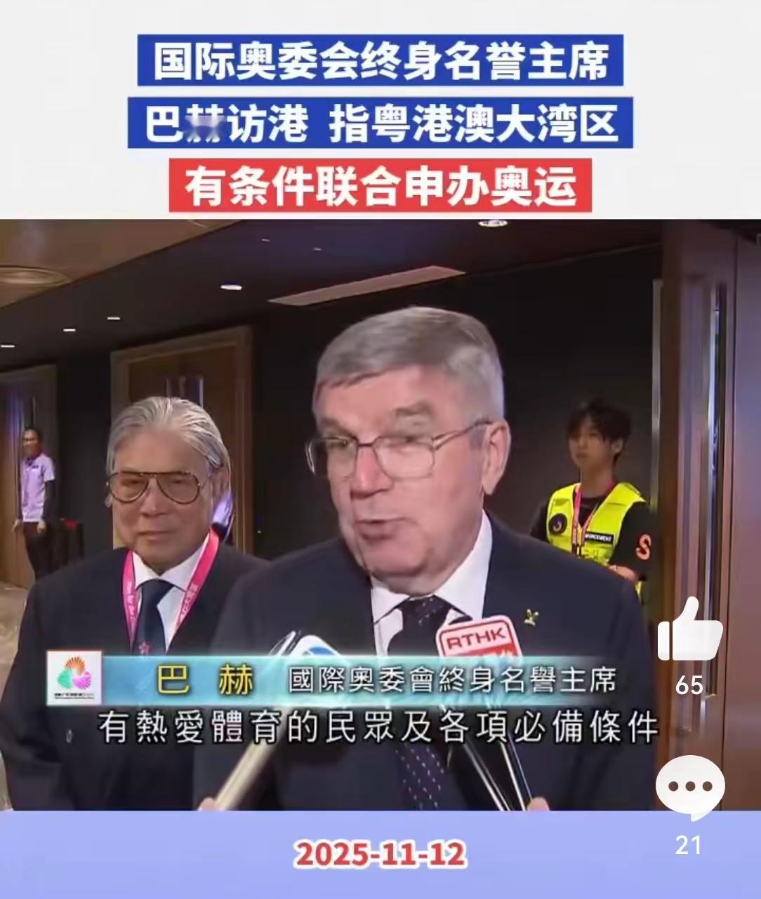 [吃瓜群众]国际奥委会前主席、终生名誉主席巴赫,在香港“盛赞”大湾区全运会,表情近乎“眉飞色舞”[思考]怎么说呢?虽然他肯定不会用算盘,但有一种“算盘珠子迸我脸上”的既视感[灵光一闪] [大金牙]不过,中国大陆已经不需要再举办奥运会来“展示国力”了…如果2030年前统一台湾,倒是可以考虑一下2036办个“堂会”、宣示主权[奋斗]