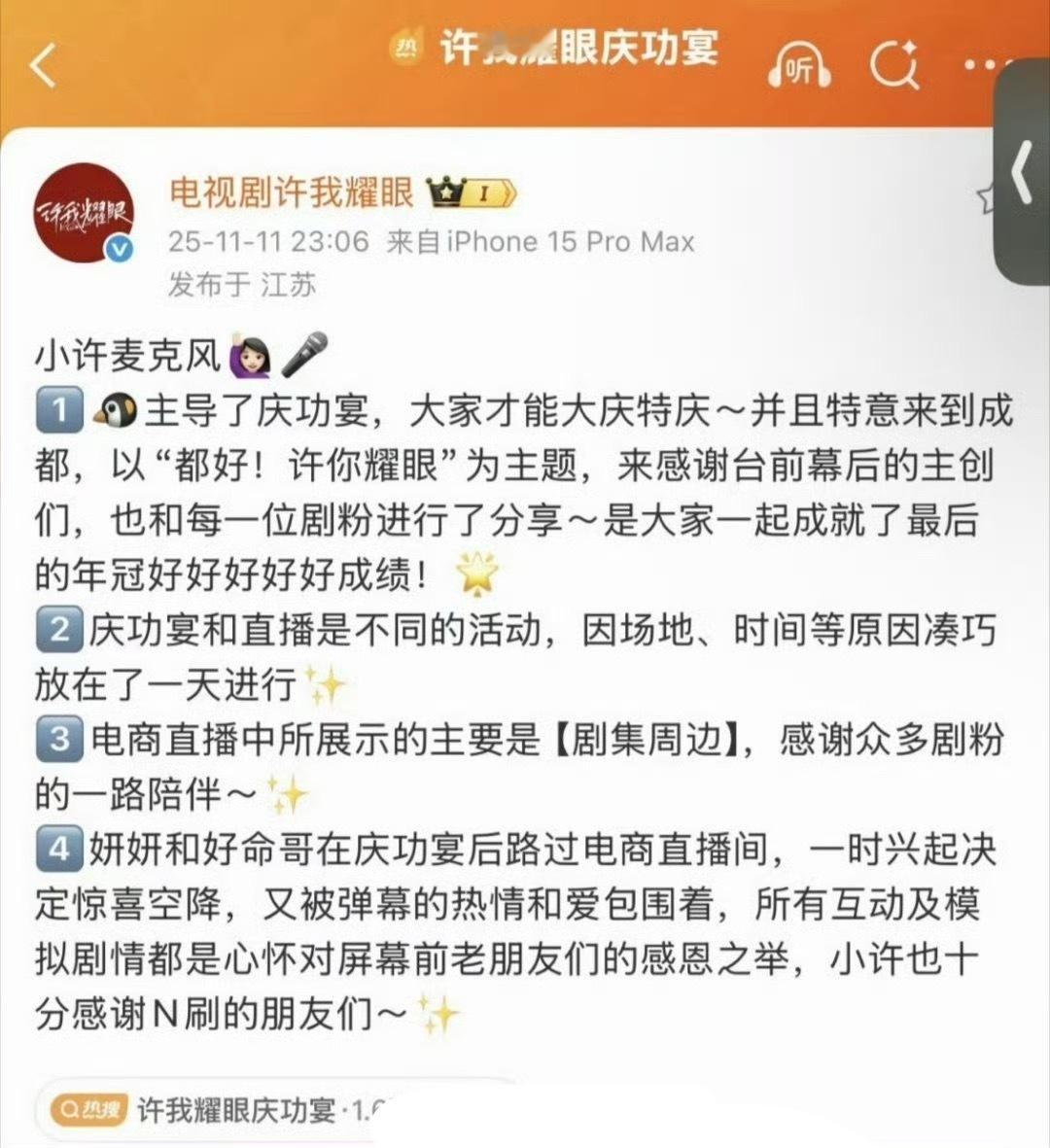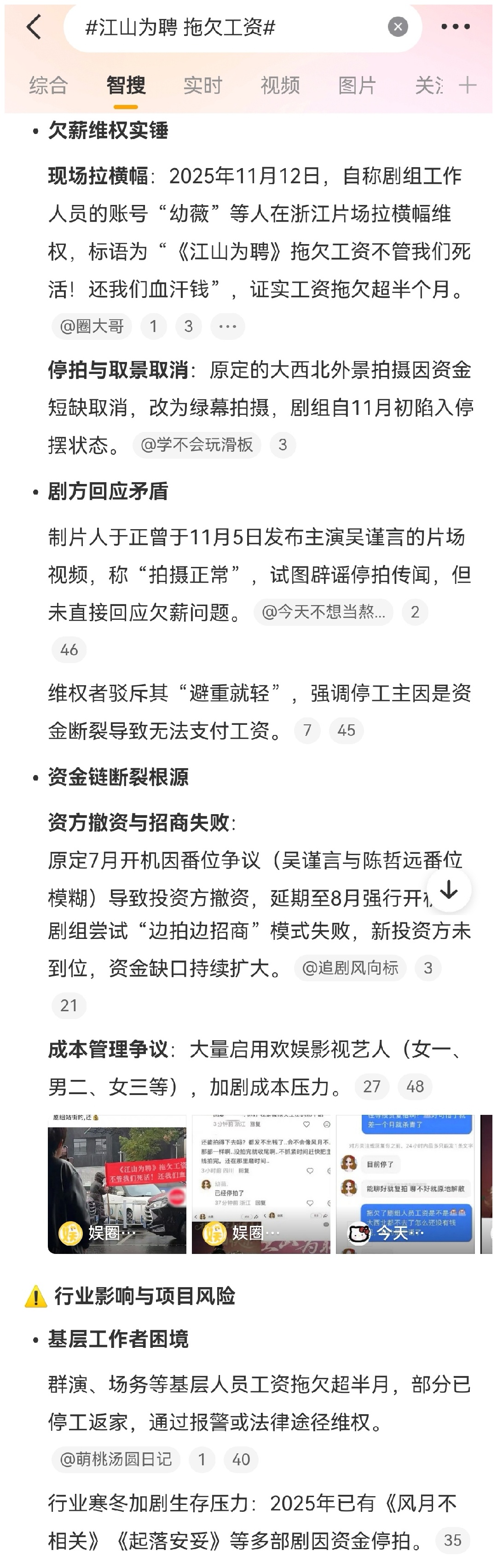 2025-11-13总结①奔跑吧,沙溢宋雨琦路透,被指过度亲密,节目组出面澄清,这是当地的传统礼仪 图1②许我耀眼剧方回应庆功宴直播带货的问题,不是同活动,巧合凑一起了 图2③郑秀妍因合同纠纷被诉,涉嫌欠债上千万元,郑秀妍工作室发布官方声明,是公司合同纠纷,跟她无关 图3④红果,对刷数据的短国演员直接点名 图4撕❶月落花都,李兰迪方否认下场撕番 图5❷江山为聘,被拉横幅讨薪 图6❸赵樱子直播说于正觉得她很适合演小龙女,于正否认 图7❹于正直播说告白制片人也跟他说王星越是唯一选择 图8❺种地吧李昊,直播洗澡,引发网友不适,粉丝解释只是拍了天花板而已 图9❻徐若晗粉丝被指使用张凌赫头像在短视频平台创建真人CP超话“阳光赫徐” 图1011号